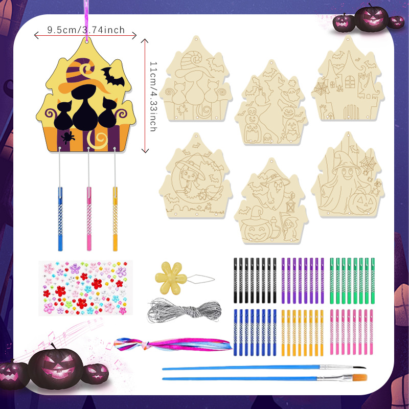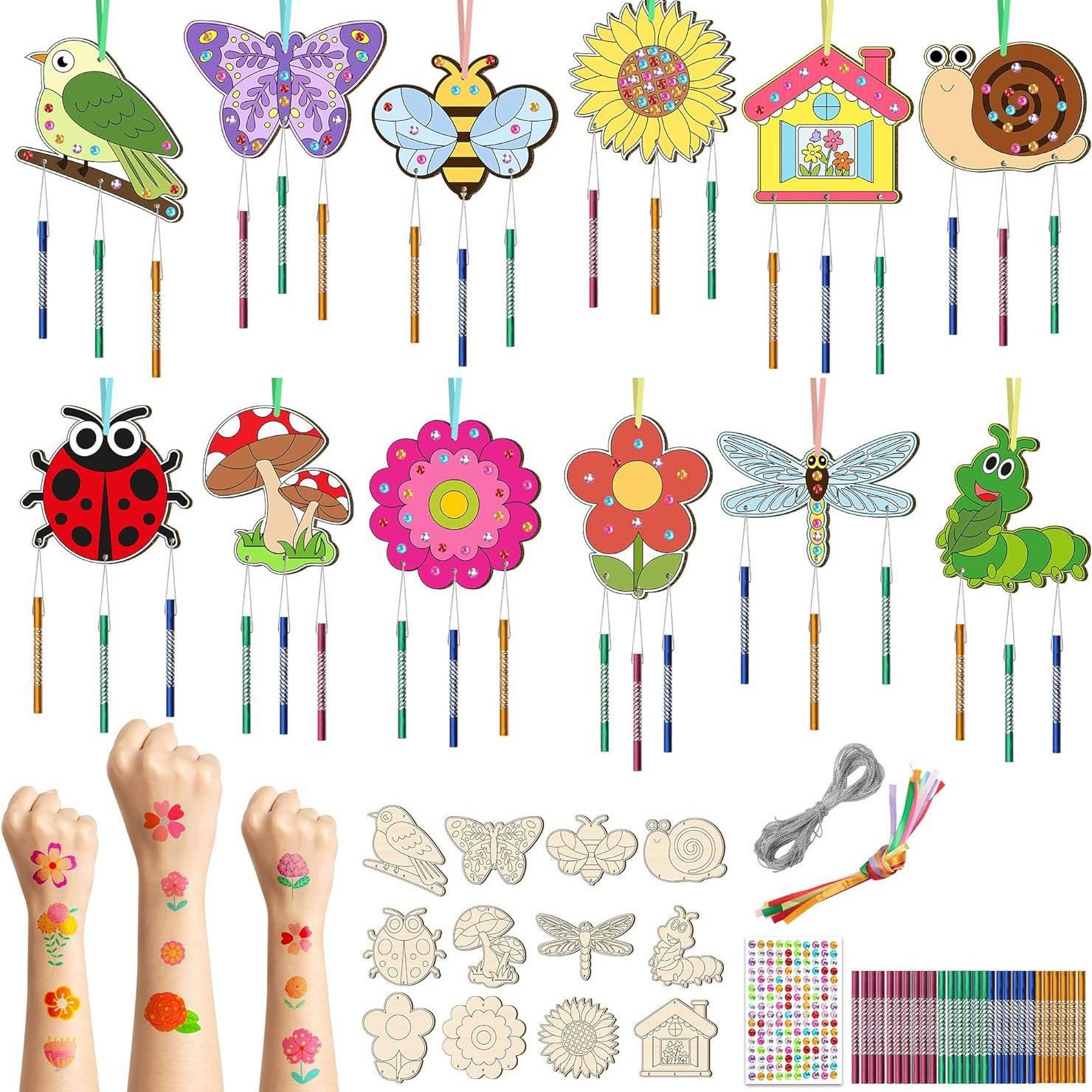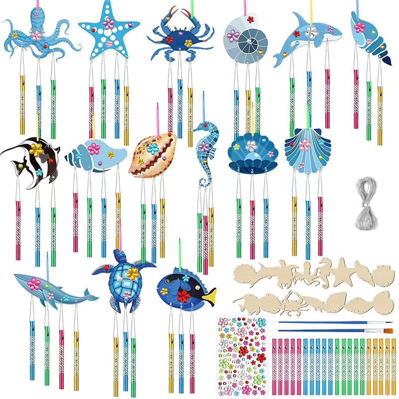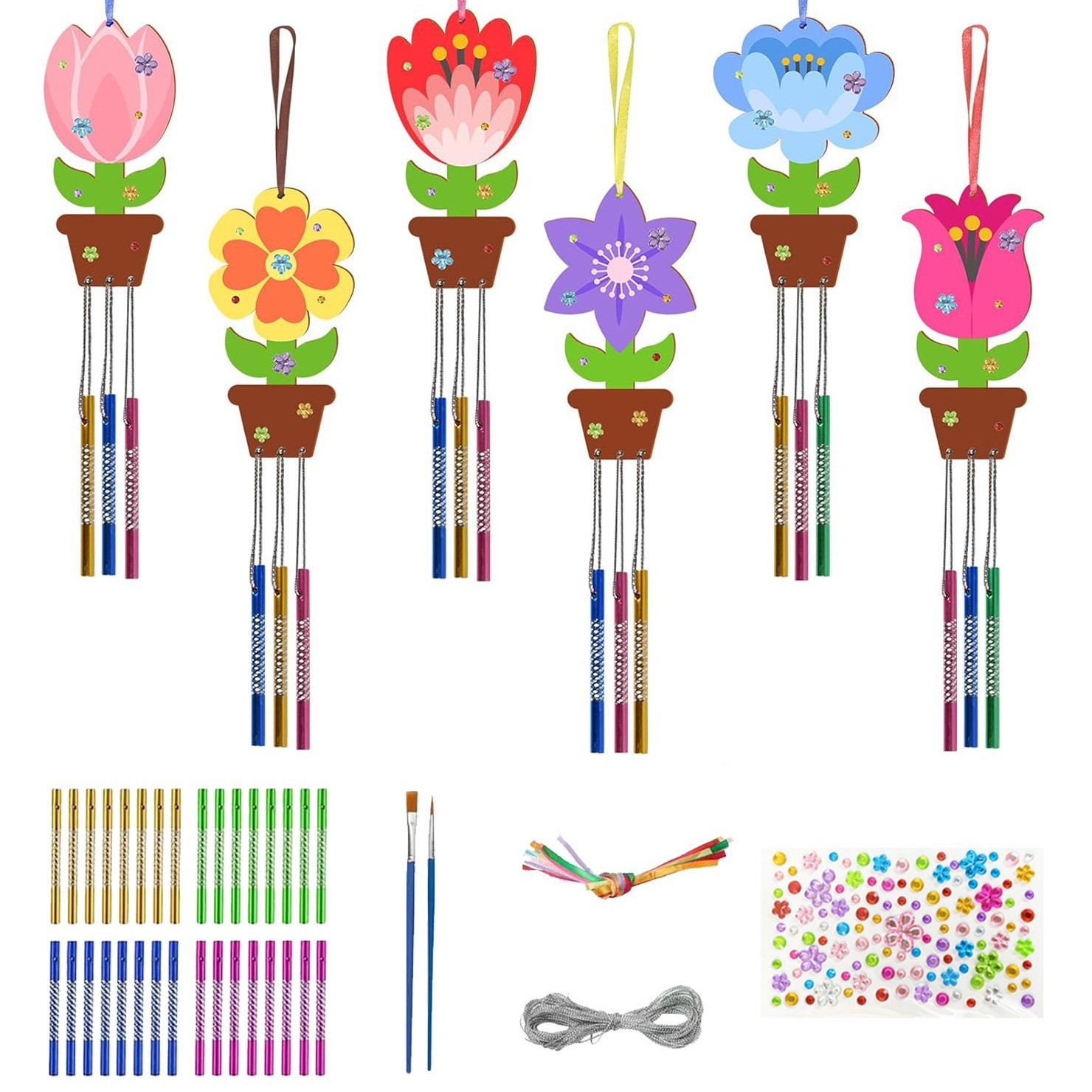 국경 간 만다라 바람 차임 미완성 DIY 나무 봄 동물 바람 차임 공예 가정 장식