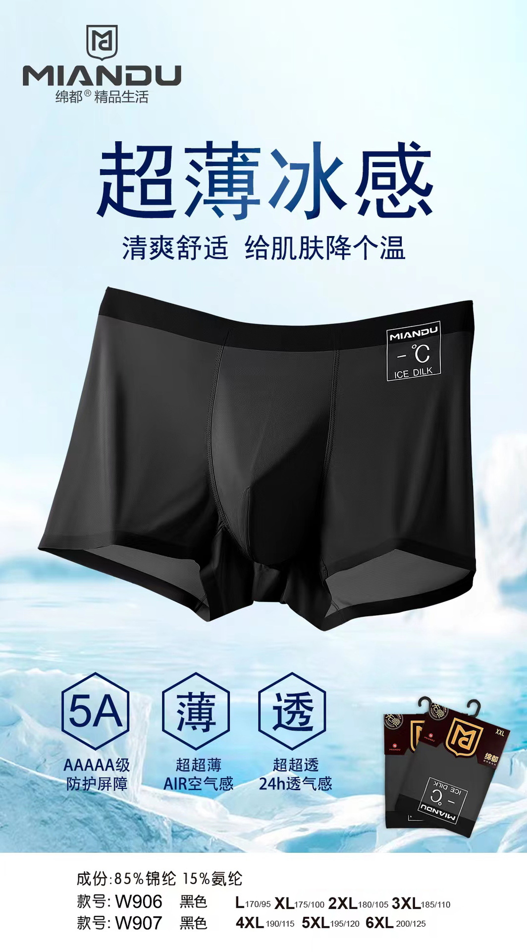 XL-6XL 싱글 매달린 남자 울트라 얇은 아이스 실크 비 마킹 복서 속옷 남자 팻 가이 팻 복서 반바지 여름