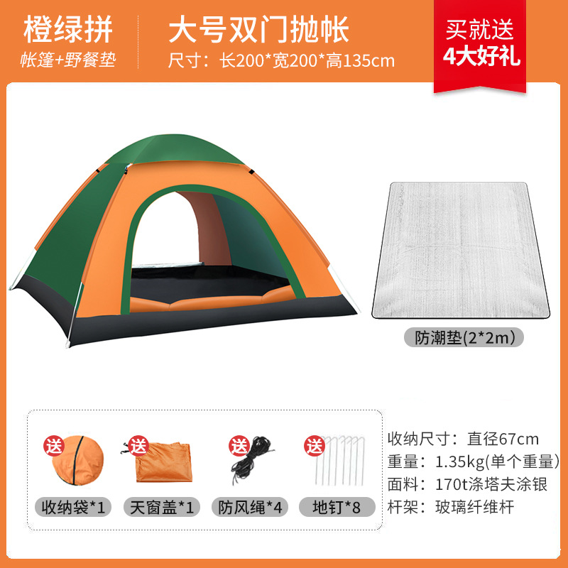 텐트 야외 캠핑 완전 자동 휴대용 접이식 어린이 가정용 다인용 야외 하룻밤 하이킹 장비