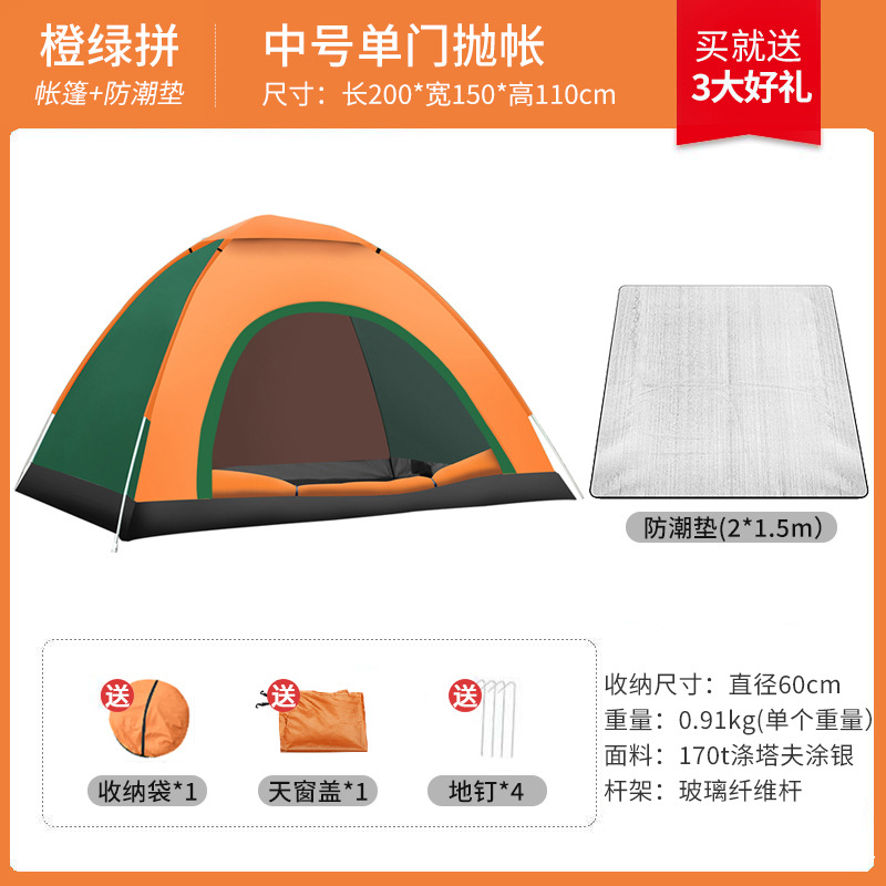 텐트 야외 캠핑 완전 자동 휴대용 접이식 어린이 가정용 다인용 야외 하룻밤 하이킹 장비스토어 가기