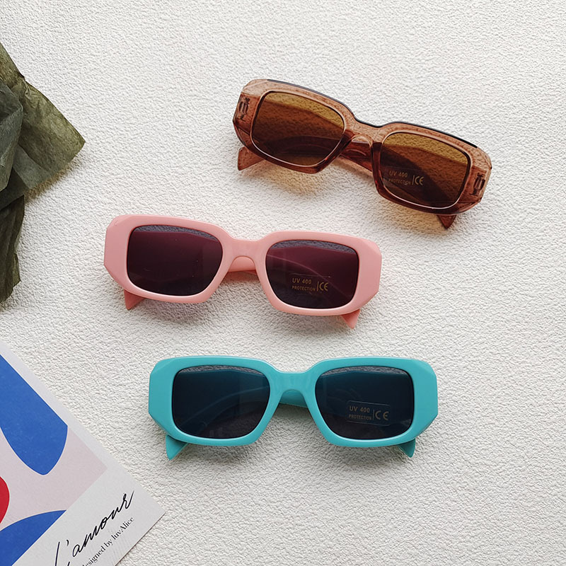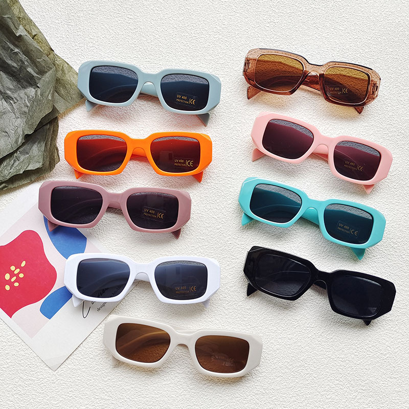 새로운 스퀘어 컷 엣지 어린이 선글라스 레트로 다각형 넓은 다리 선글라스 아기 자외선 차단 선글라스스토어 가기