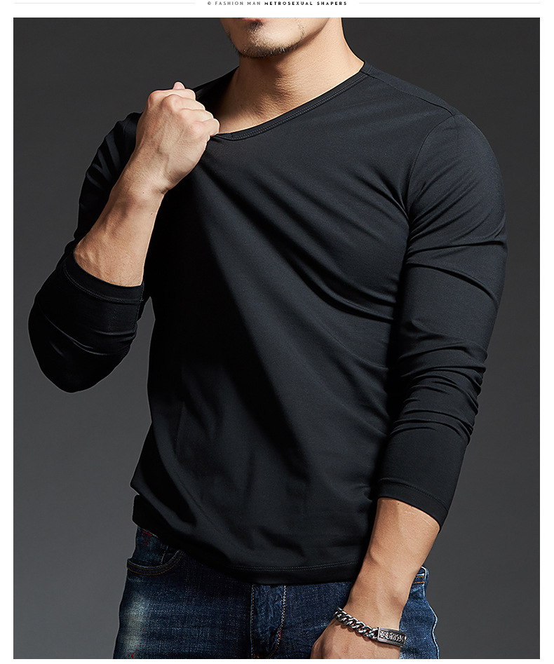 도매 V 넥 긴 소매 티셔츠 남성용 다크 그레이 슬림 바닥 셔츠 타이트한 내부 풀오버 트렌디 한 가을 재킷 남성스토어 가기
