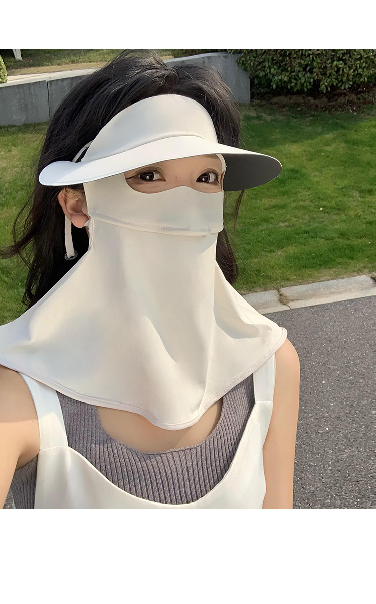 선스크린 모자 통합 목 보호 여성 여름 풀 페이스 UV 보호 모자 브림 아이스 실크 마스크 페이스 지니 사이클링