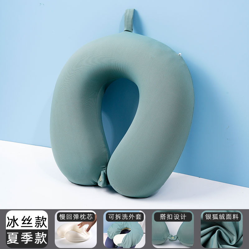 여름 얼음 실크 U 자형 베개 피부 친화적 인 메모리 폼 여행 목 베개 휴대용 비행기 목 베개 얼음 실크 시원한 느낌 U 자형 목 베개스토어 가기