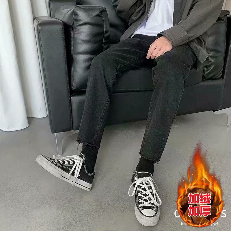 홍콩 스타일 가을과 겨울 세련된 빈티지 세탁 느슨한 데님 바지 남성용 스트레이트 슬림 룩 스트레이트 엣지 한국 유행 바지스토어 가기