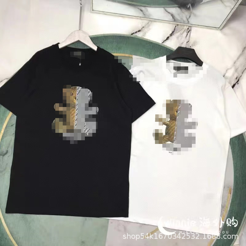 FEND 가족 새로운 공동 인쇄 크루 넥 반팔 티셔츠 여성용 코튼 트렌디 남성과 여성의 동일 스타일 커플 스타일