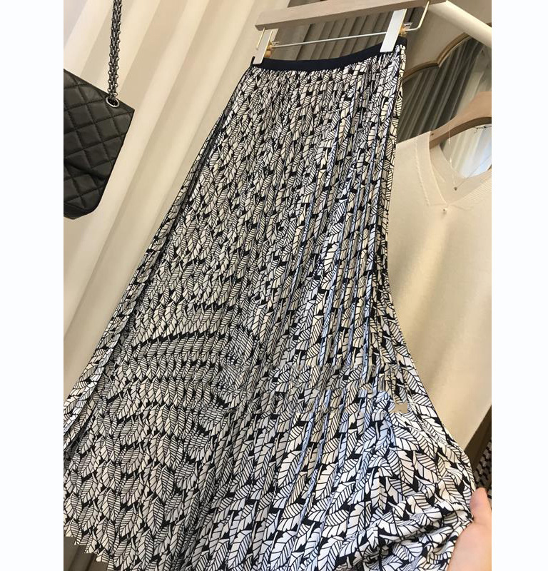 让人眼前一亮~法式风十足!气质树叶印花显瘦A字百褶裙半身裙女春