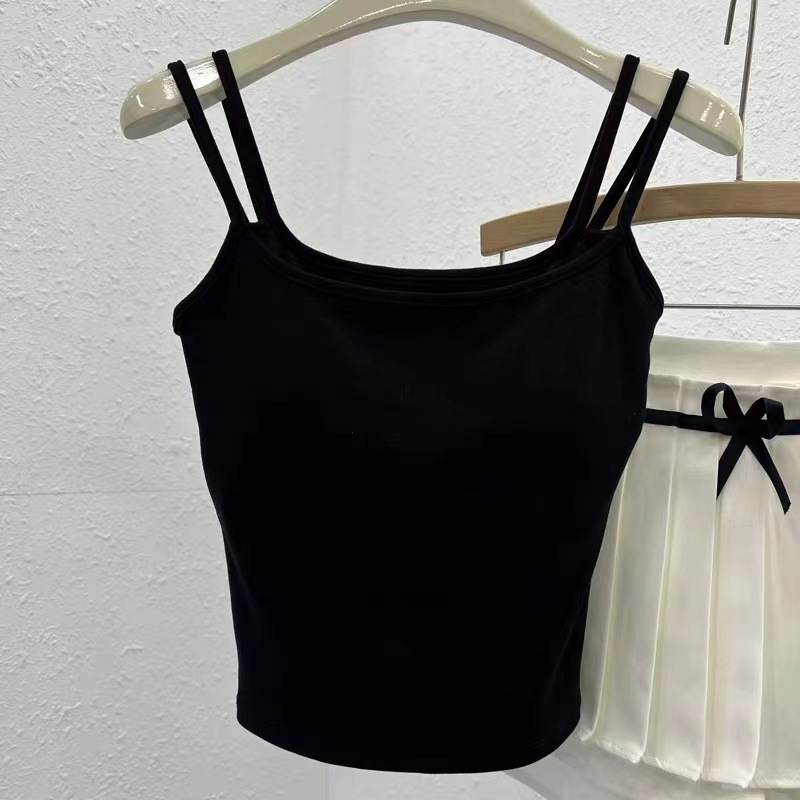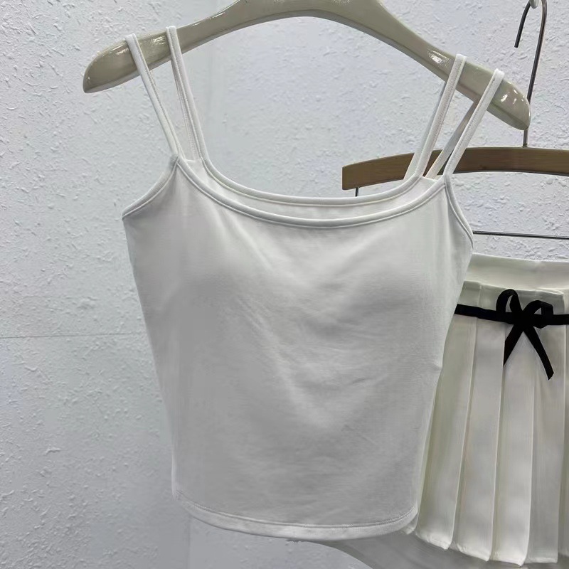 여성용 봄 여름 더블 숄더 스트랩 조끼, 탈부착 가능한 가슴 패드, 핫걸, 다용도 바닥 튜브 탑, 아름다운 등 서스펜더, 페이크 투피스