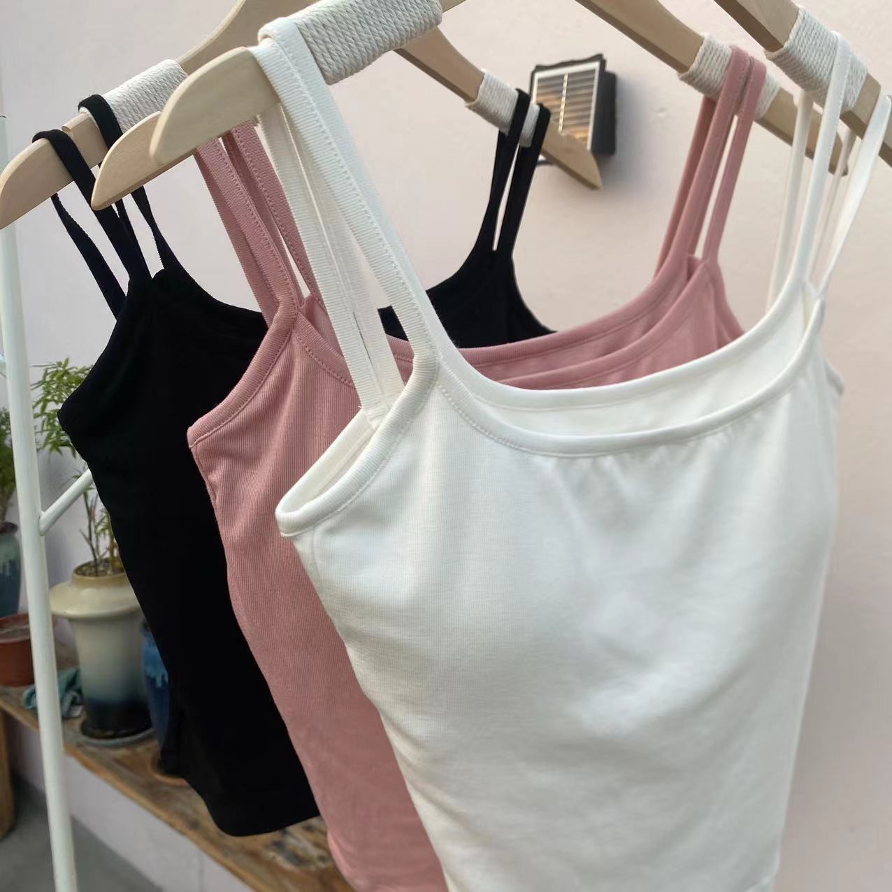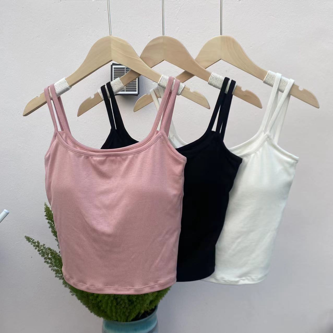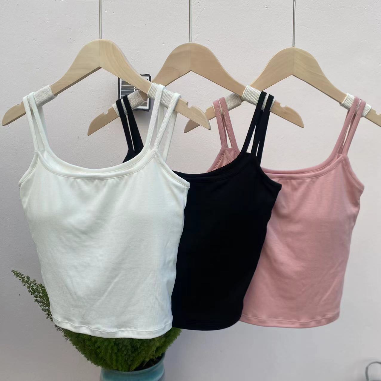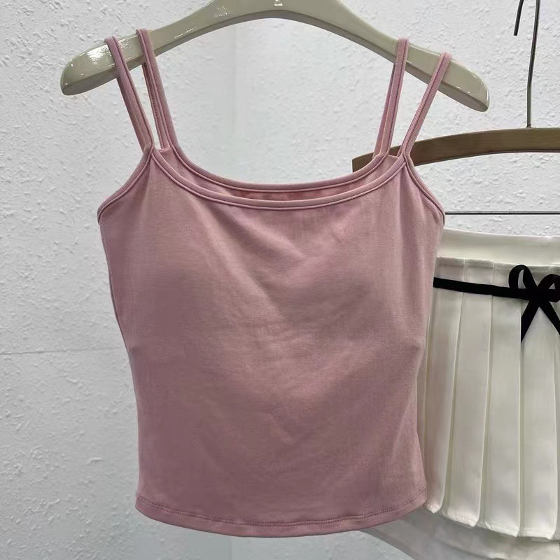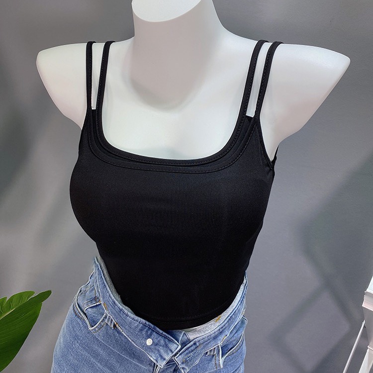 여성용 봄 여름 더블 숄더 스트랩 조끼, 탈부착 가능한 가슴 패드, 핫걸, 다용도 바닥 튜브 탑, 아름다운 등 서스펜더, 페이크 투피스스토어 가기