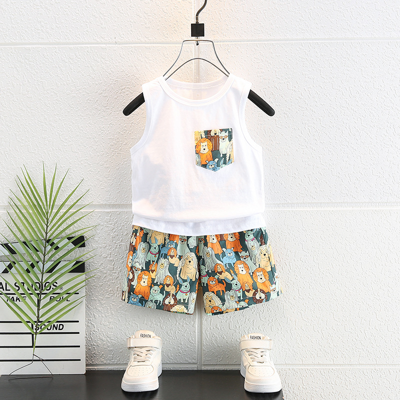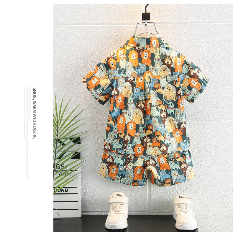 남자들의 여름 세트 2025 새로운 유행 어린이 여름 원피스 반팔 더피 잘생긴 거리 셔츠 3 종 세트스토어 가기