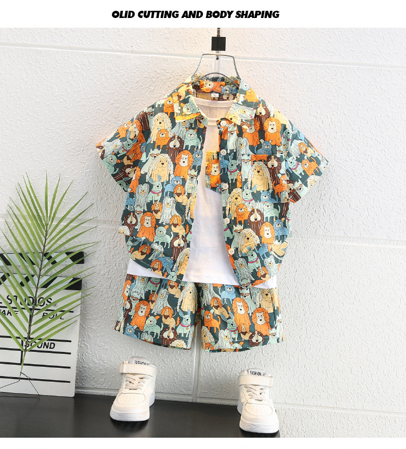 남자들의 여름 세트 2025 새로운 유행 어린이 여름 원피스 반팔 더피 잘생긴 거리 셔츠 3 종 세트