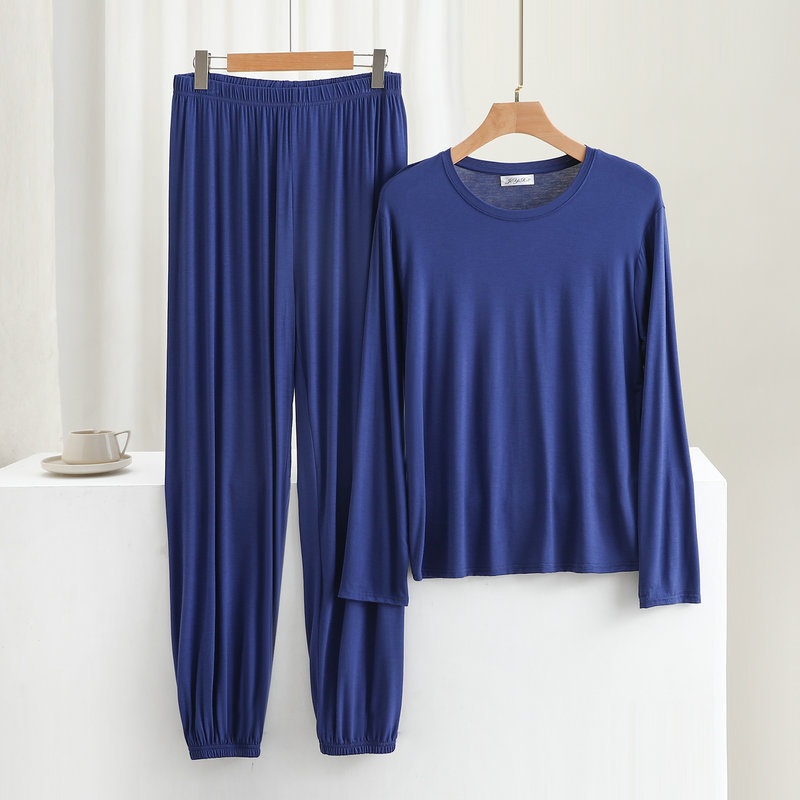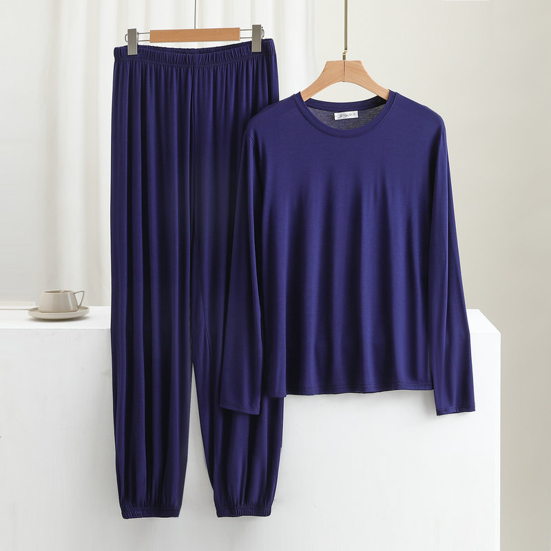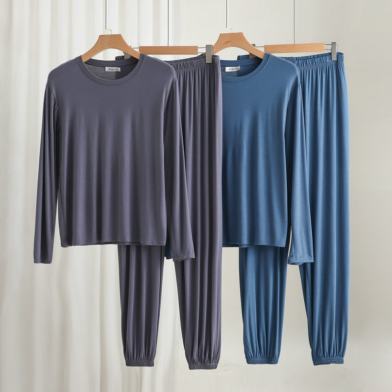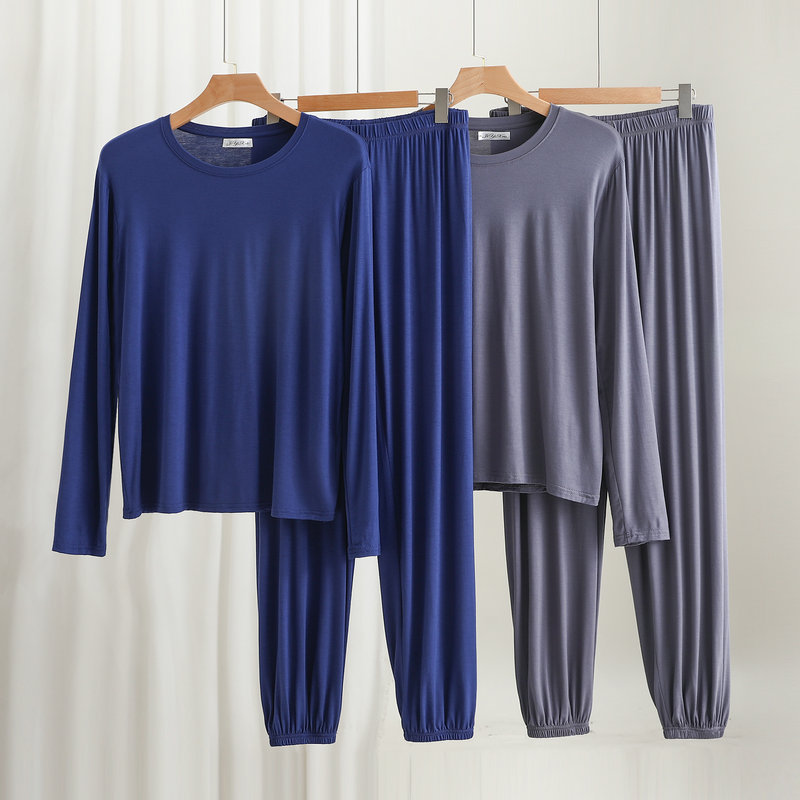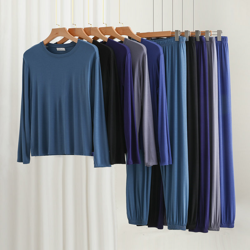 남성용 긴 소매 라운드 넥 파자마 홈 의류 봄과 여름 얇은 비트 코튼 외부 입고 느슨한 2 피스 세트