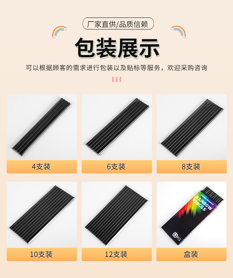 국경 간 공급 블랙 우드 7 색 코어 컬러 도매 폭발적인 무지개 어린이 그림 연필 3.3 코어스토어 가기