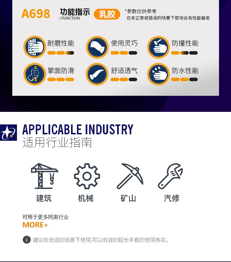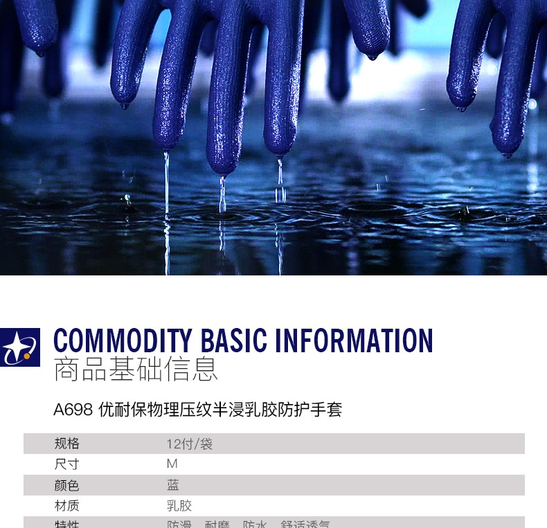 노동 보호 장갑 A698 내마모성 미끄럼 통기성 라텍스 엠보싱 현장 작업 고무 보호