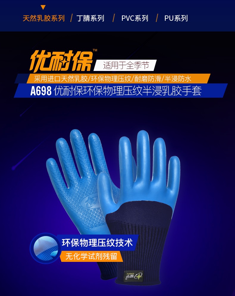 노동 보호 장갑 A698 내마모성 미끄럼 통기성 라텍스 엠보싱 현장 작업 고무 보호스토어 가기