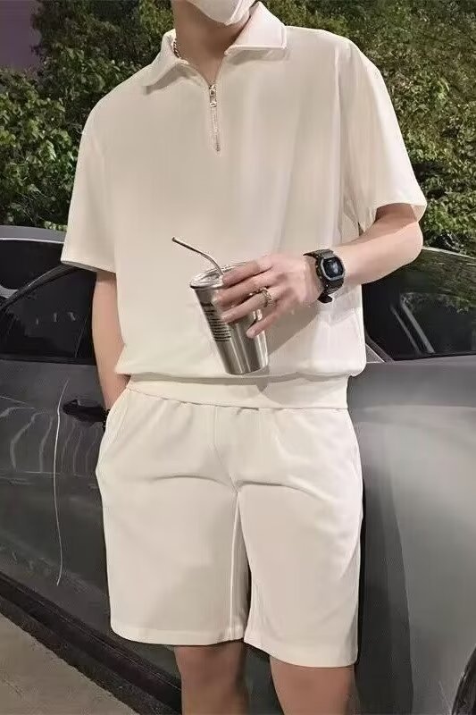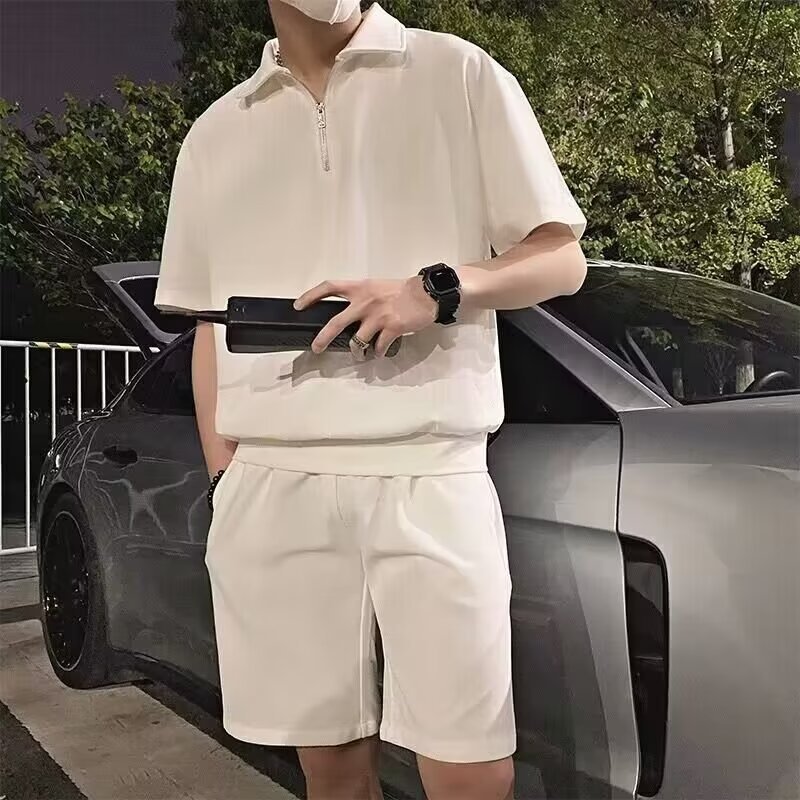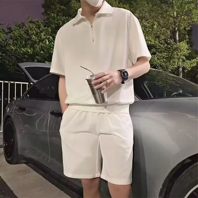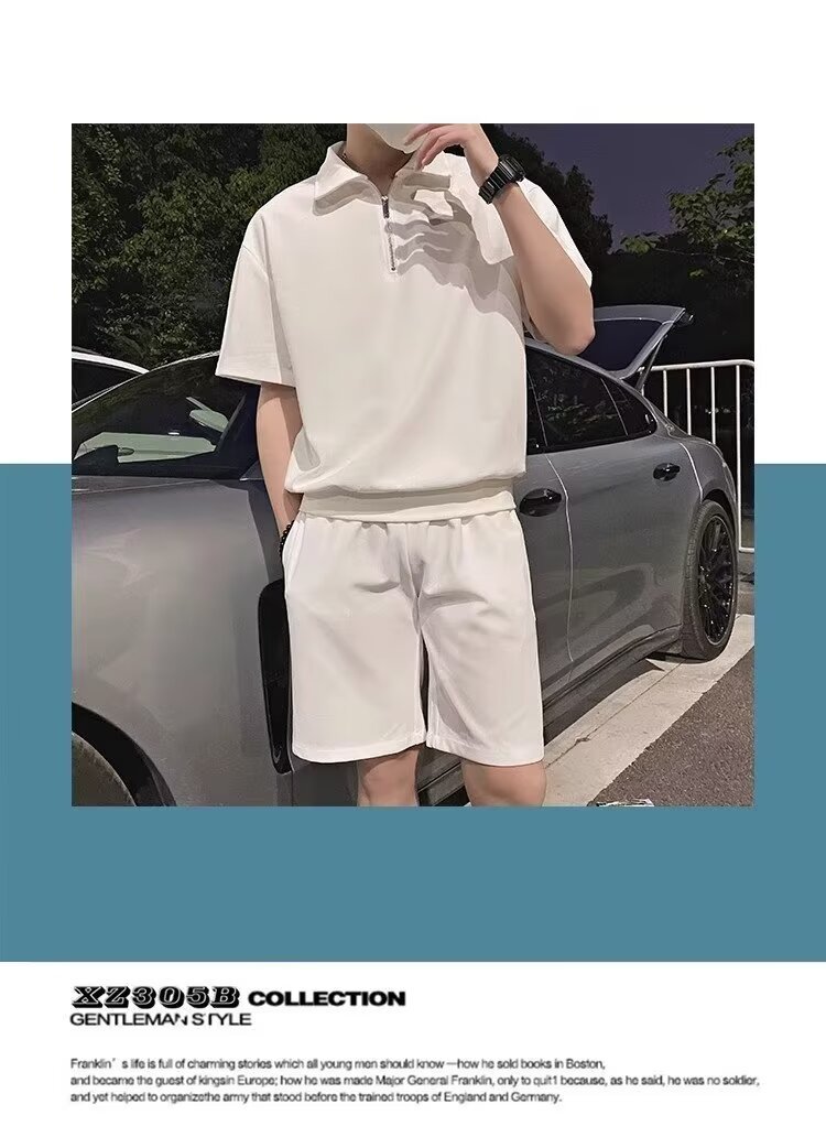 남자 캐주얼 스포츠 세트 고급 남성 캐주얼 세트 2025 새로운 패션 브랜드 반팔 폴로 셔츠 스포츠스토어 가기
