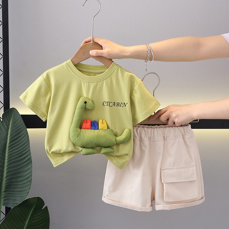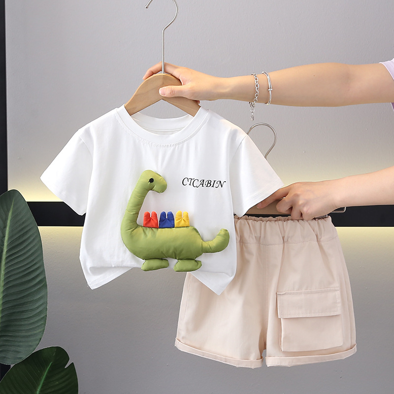 남학생 의류 여름 세트 만화 공룡 짧은 소매 투피스 2024 새로운 어린이 여름 패션 도매 대외 무역