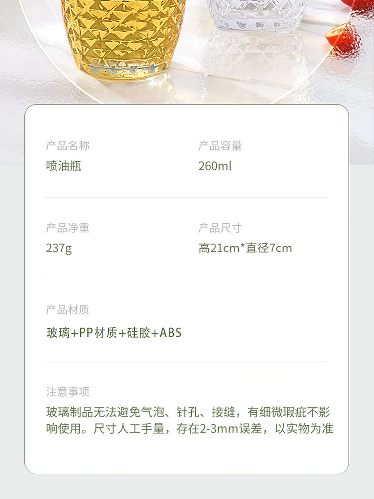 분무기 유리 가정용 주방 공기 프라이어 스프레이 병 스프레이 미스트 요리 오일 두꺼운 스프레이 캔 오일 탱크스토어 가기