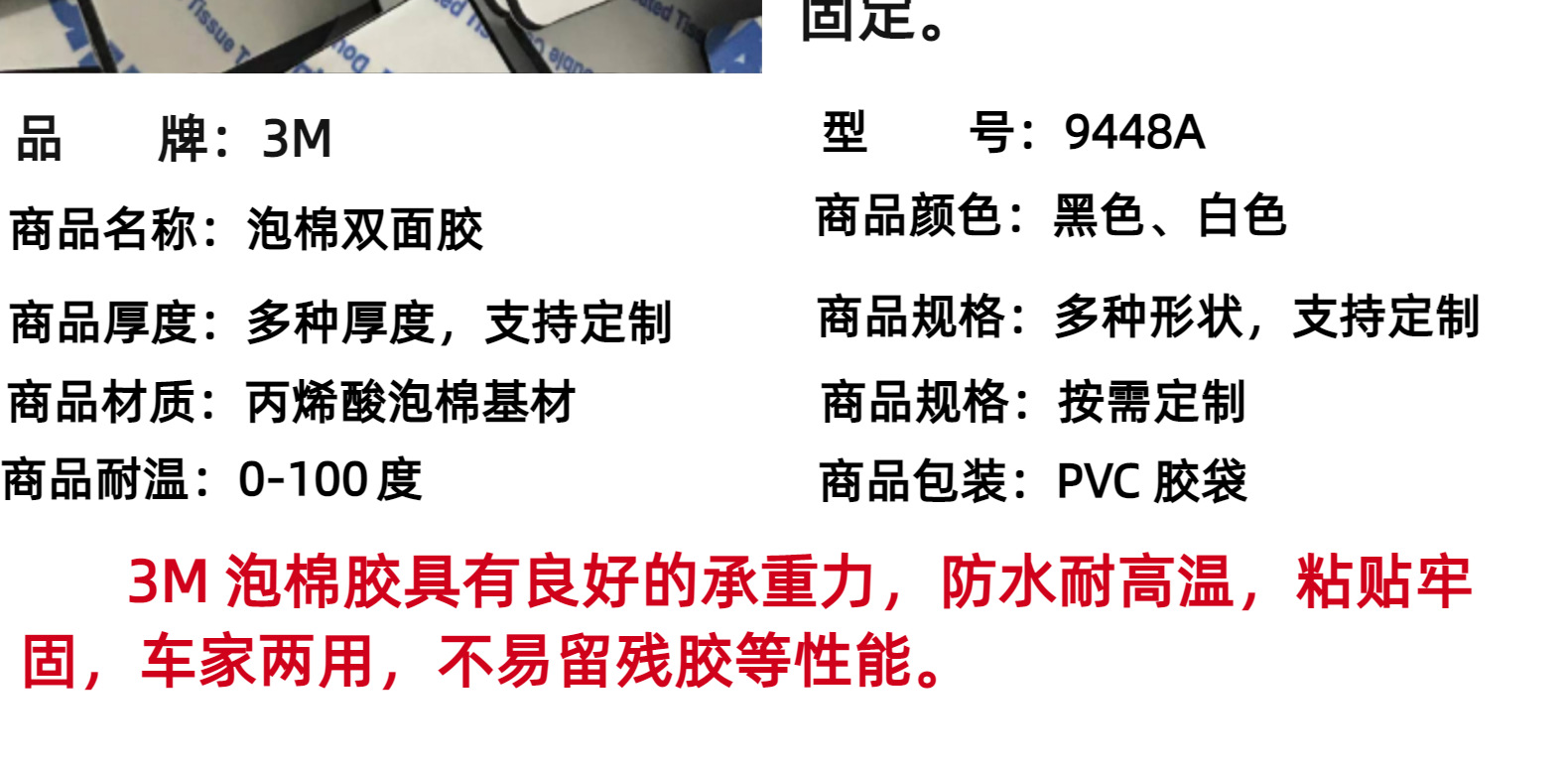 강한 접착제 9448A 폼 양면 접착 라운드 스퀘어 폼 접착 다이 커팅 및 펀칭 비 마킹 고온 저항성 EVA 스폰지 접착제스토어 가기