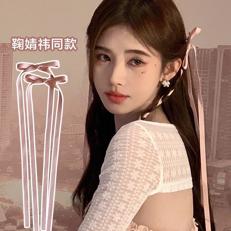 Ju Jingyi 같은 스타일 활 헤어핀 사이드 클립 발레 스타일 소녀 프렌치 리본 넥타이 헤어 액세서리 헤드