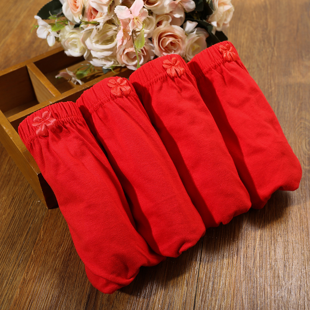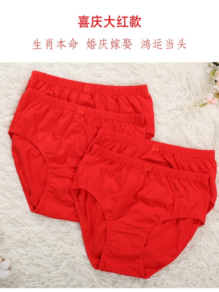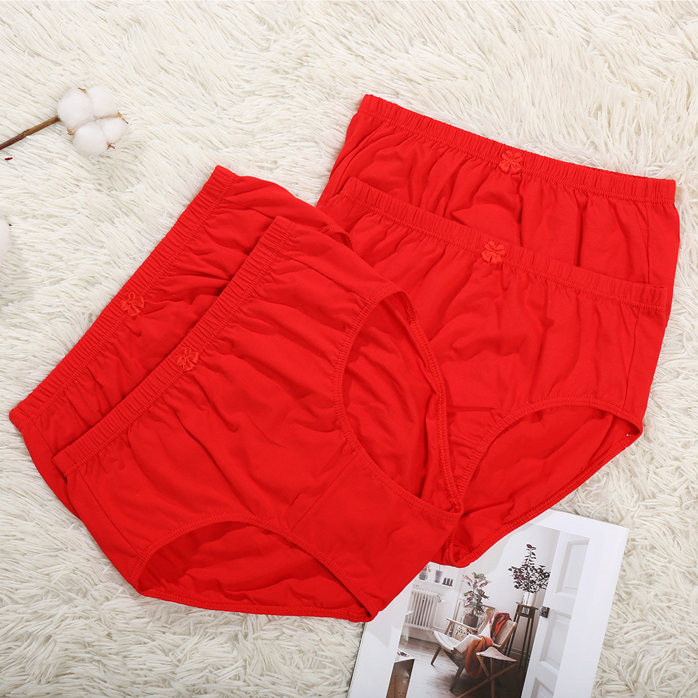 큰 빨간 속옷 여성의 면 중간 허리 플러스 사이즈 중국 빨간 브리프스토어 가기