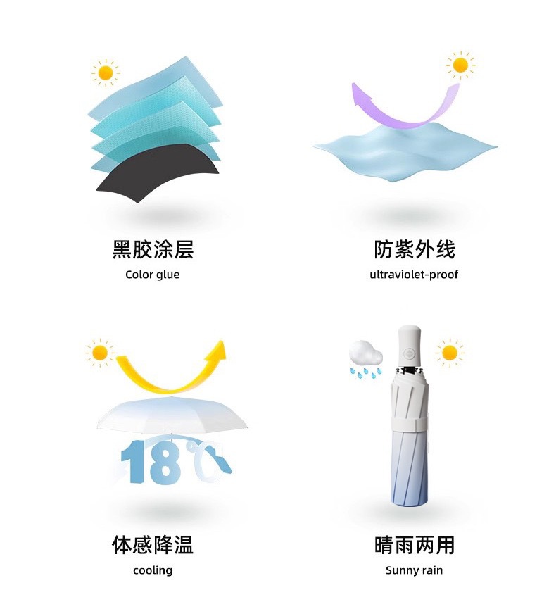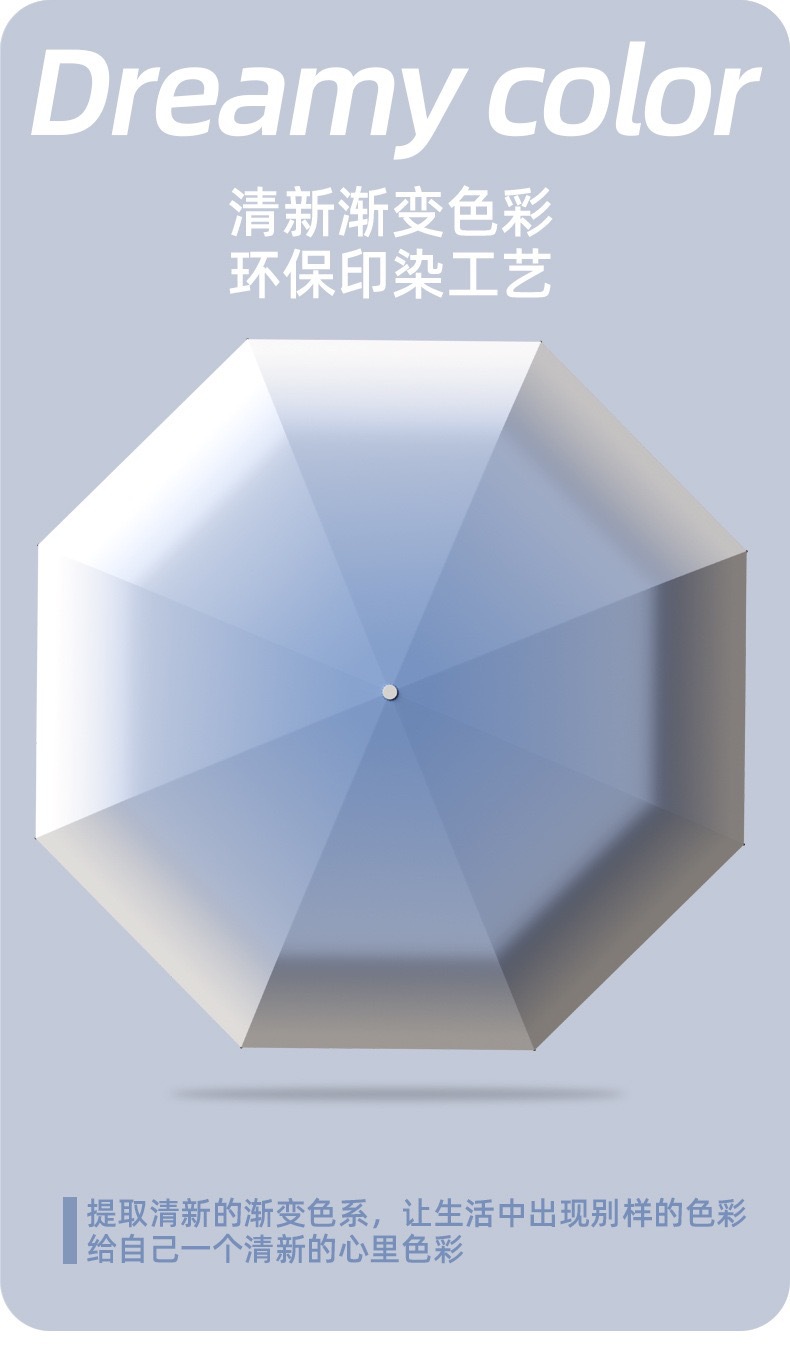 夏日炎炎,防晒工作不可少,这款伞的颜值很高,渐变色的设计,时尚又个性,无论男生还是女生,都能轻松驾驭。