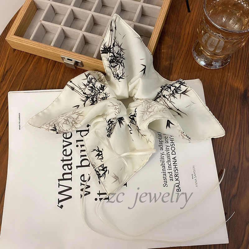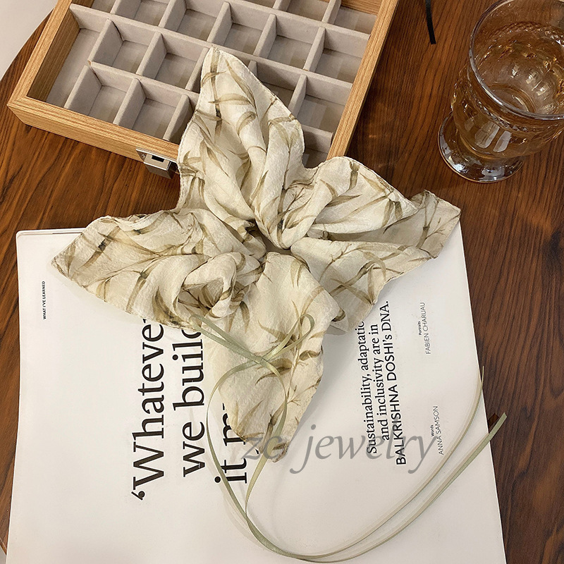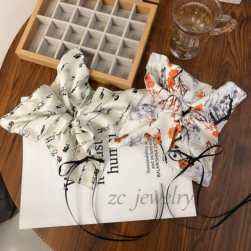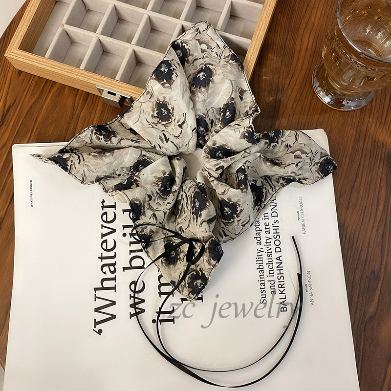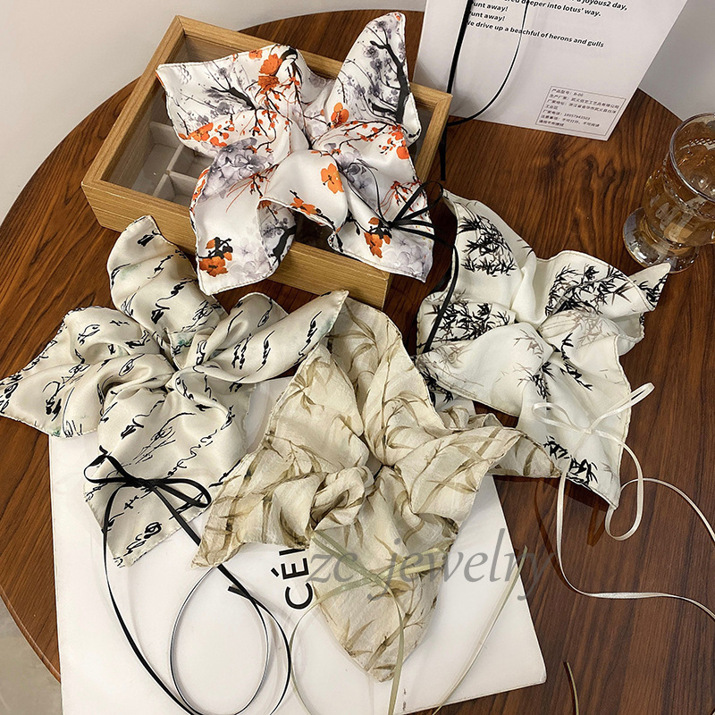 고급 새로운 중국 스타일 인쇄 된 광장 나비 콜론 서클 여성 틈새 헤드 타이 로프 우아한 헤어 액세서리