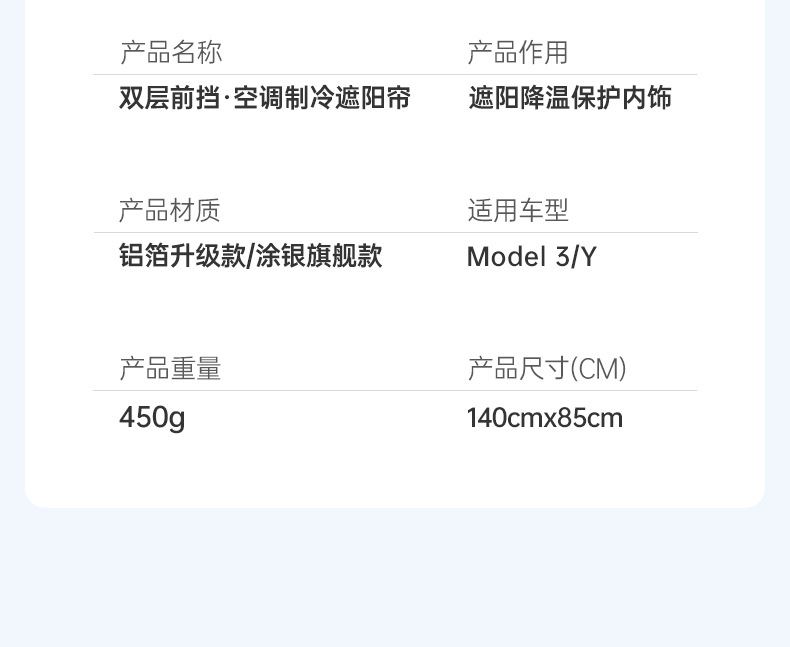• 모델 Y 더블 레이어 앞 유리 차양 [알루미늄 호일 기술]]
