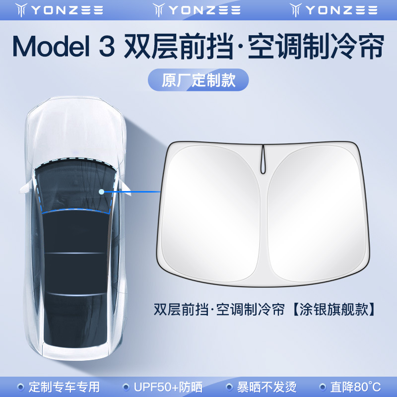 • 모델 3 더블 레이어 앞 유리 차양 [실버 코팅 기존]]