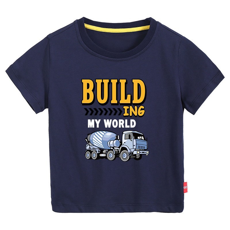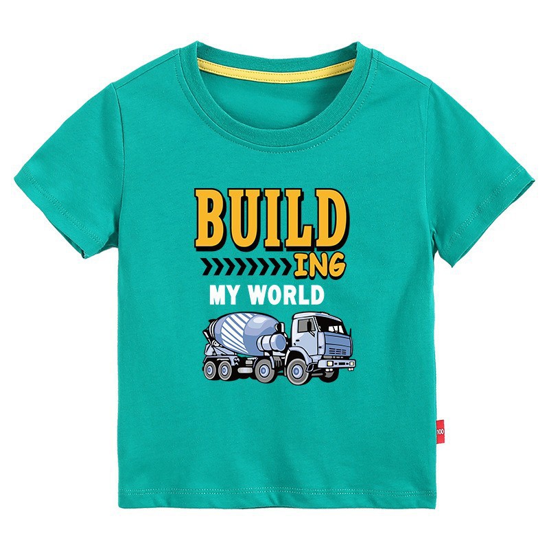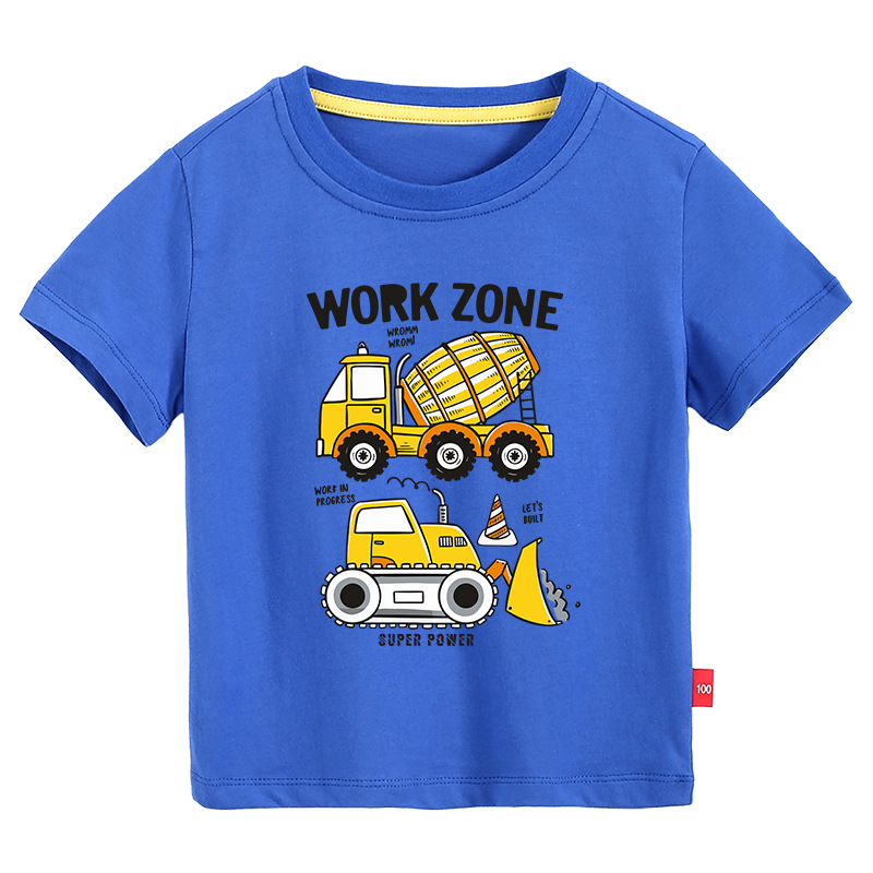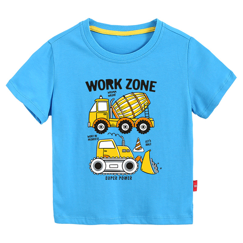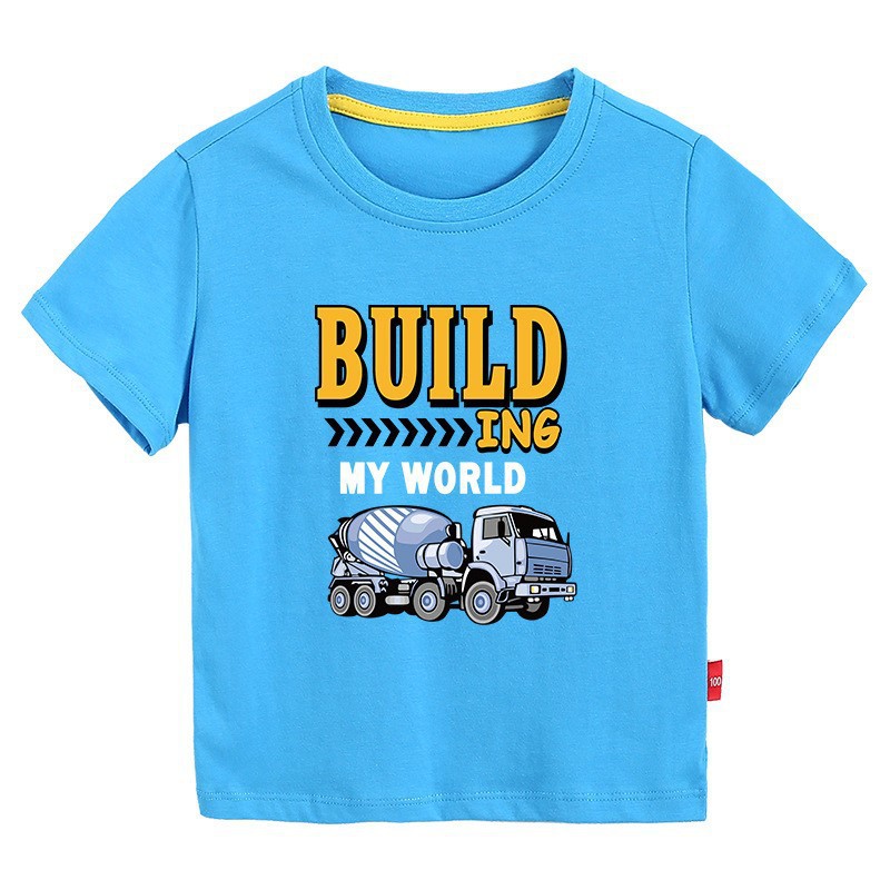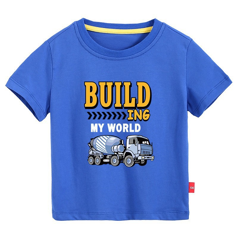 • 컬러 블루 짧은 소매 T-셔츠 엔지니어링 차량 #