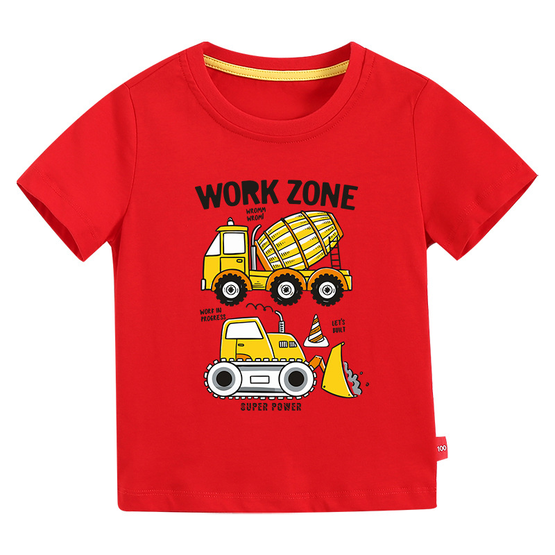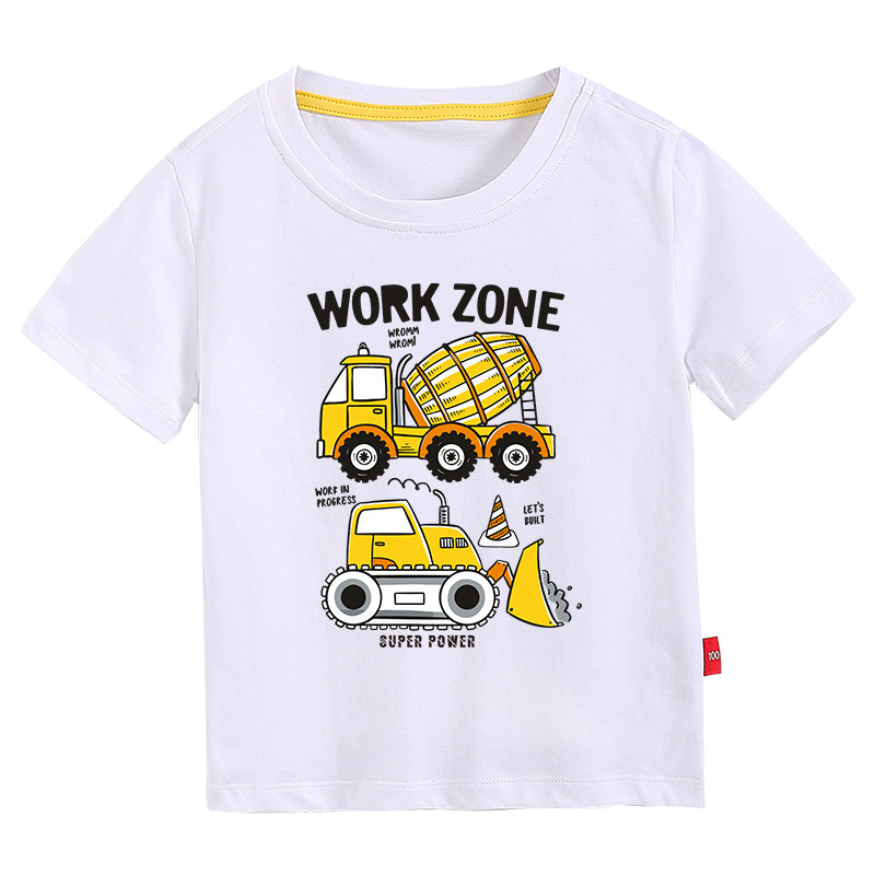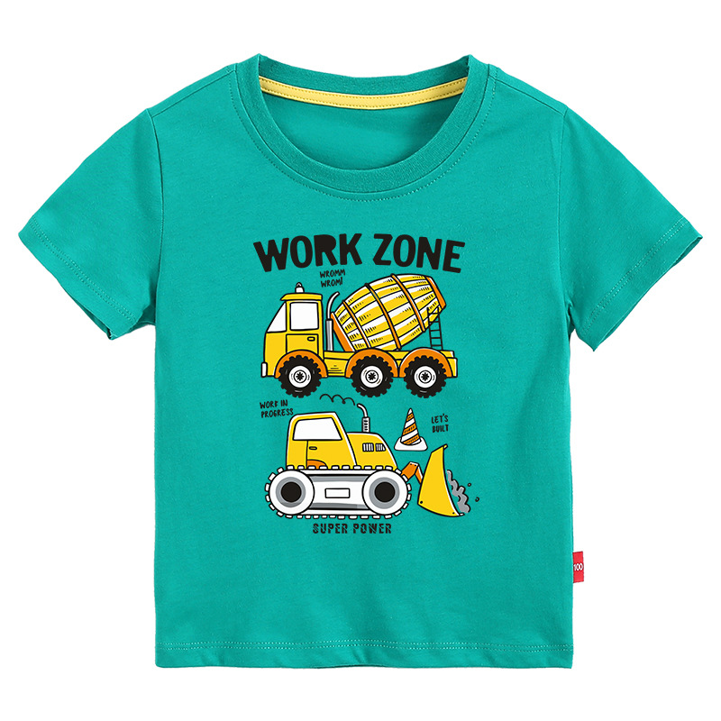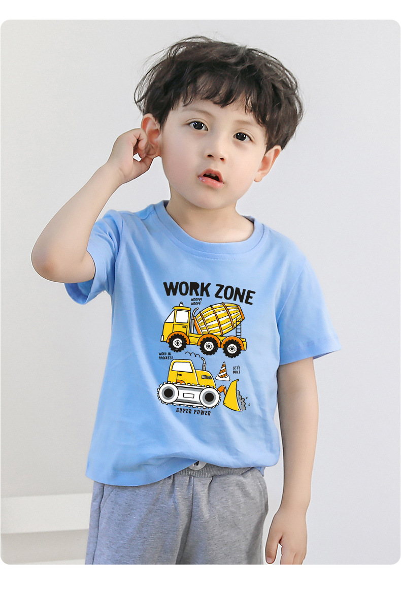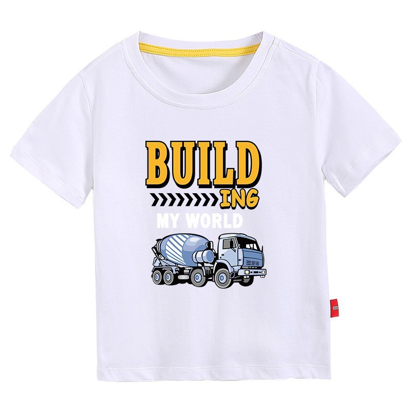 • 컬러 블루 짧은 소매 T-셔츠 엔지니어링 차량 #