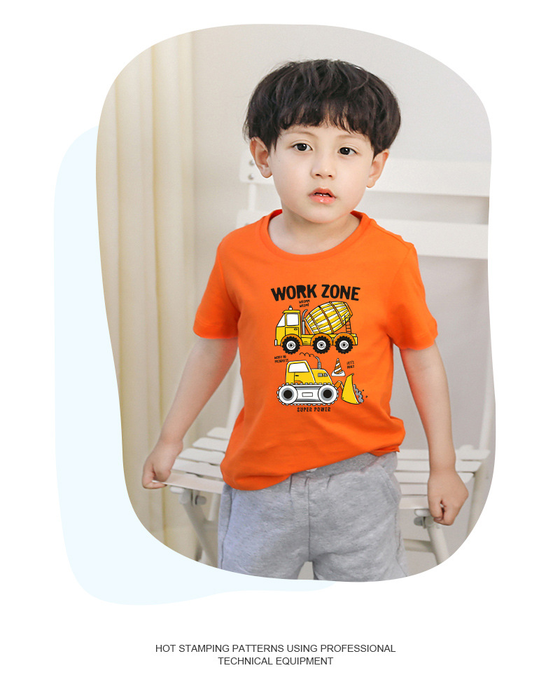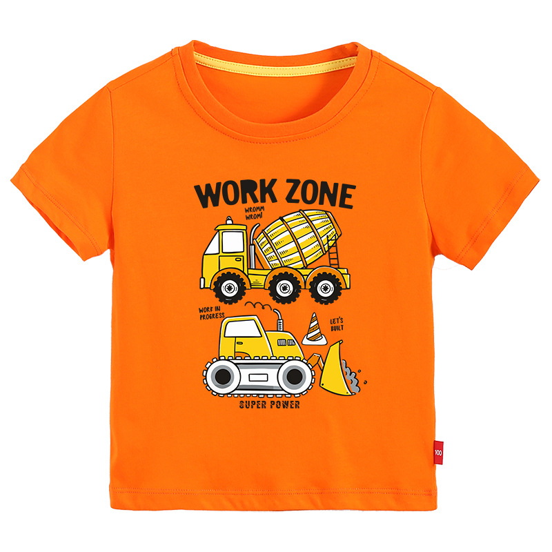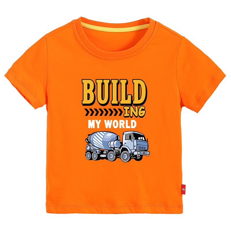 • 오렌지 반팔 T 셔츠 엔지니어링 차량 #