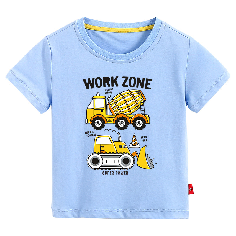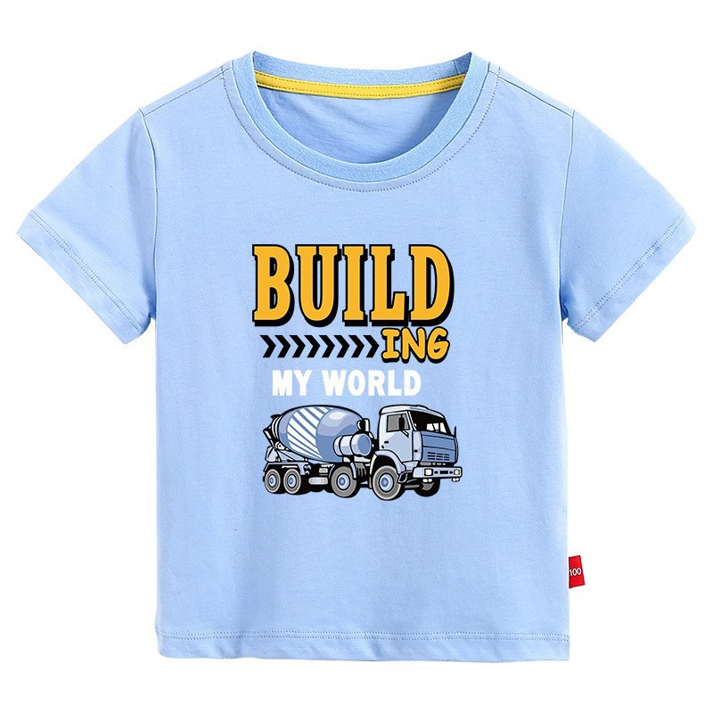 • 라이트 블루 반팔 T 셔츠 엔지니어링 차량 #