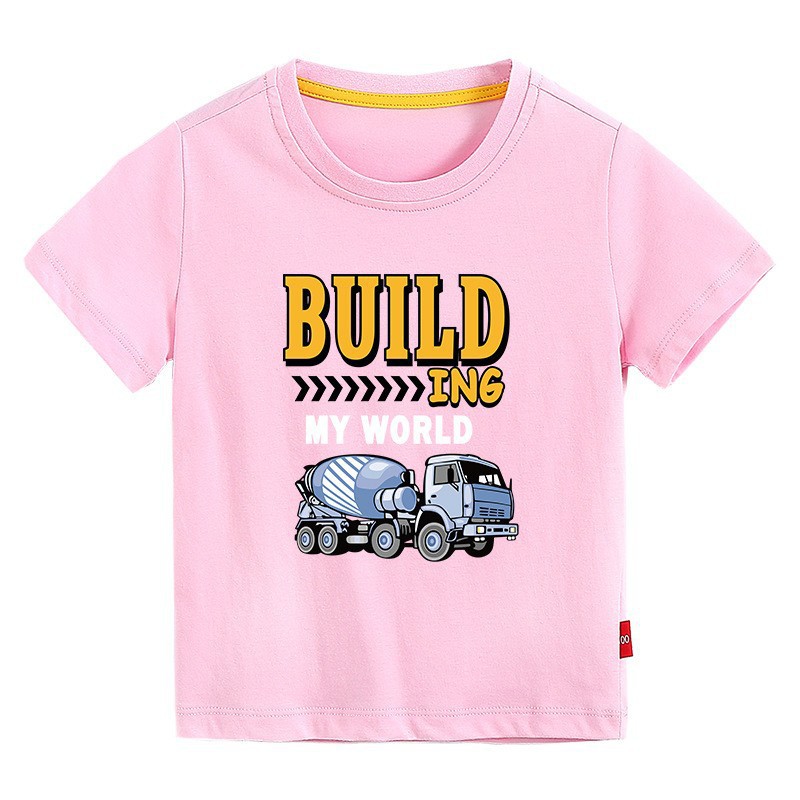 • 핑크 짧은 소매 T-셔츠-엔지니어링 차량 #