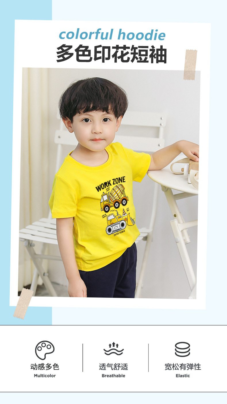 어린이 새로운 인쇄 반팔 탑 보이즈 코튼 라운드 넥 반팔 티셔츠 스팟 헤어 베이비 여름 옷 1