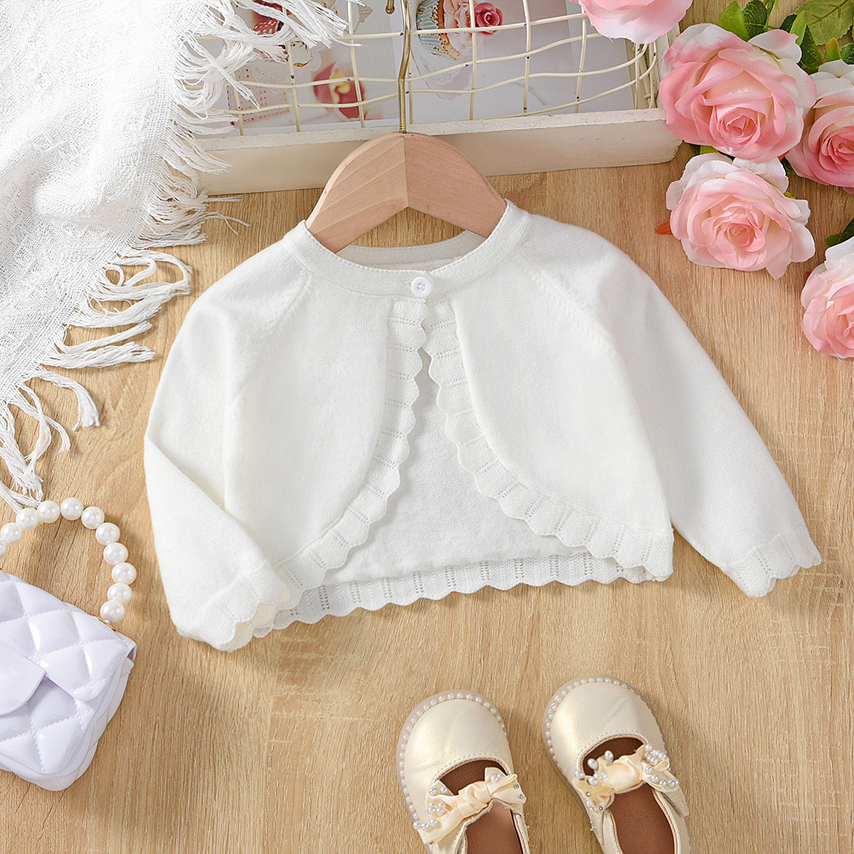 소녀 카디건 소녀의 니트 스웨터 아동복 아기 착용 왁스 코트 니트 목도리