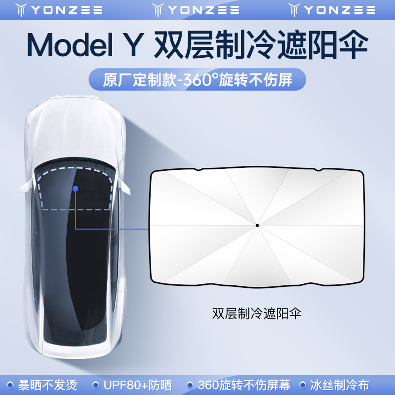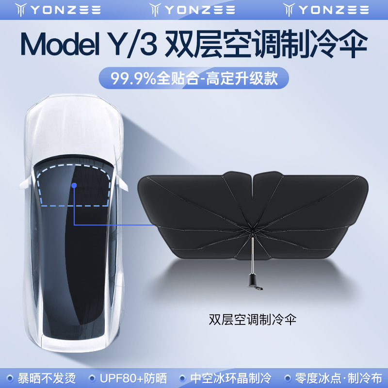 • 모델 Y/3 특수 차양-스크린 손상 없음 [회전 가능한 우산 손잡이-더블 레이어 에어컨 냉동]]