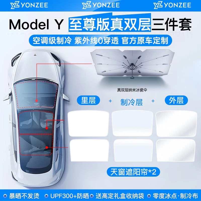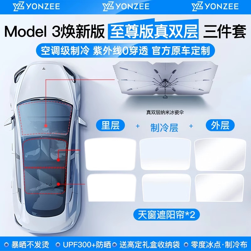 • [Huanxin Model3 전면 및 후면 Sunrop Sunshade] 오리지널 카 컬러 ◆ 익스트림 에디션 트루 더블 레이어 3 피스 세트 ◆ 아이스 크리스탈 나노 열 절연 ◆ 초 변경 에어컨 방 ◆ 0 붕괴 0