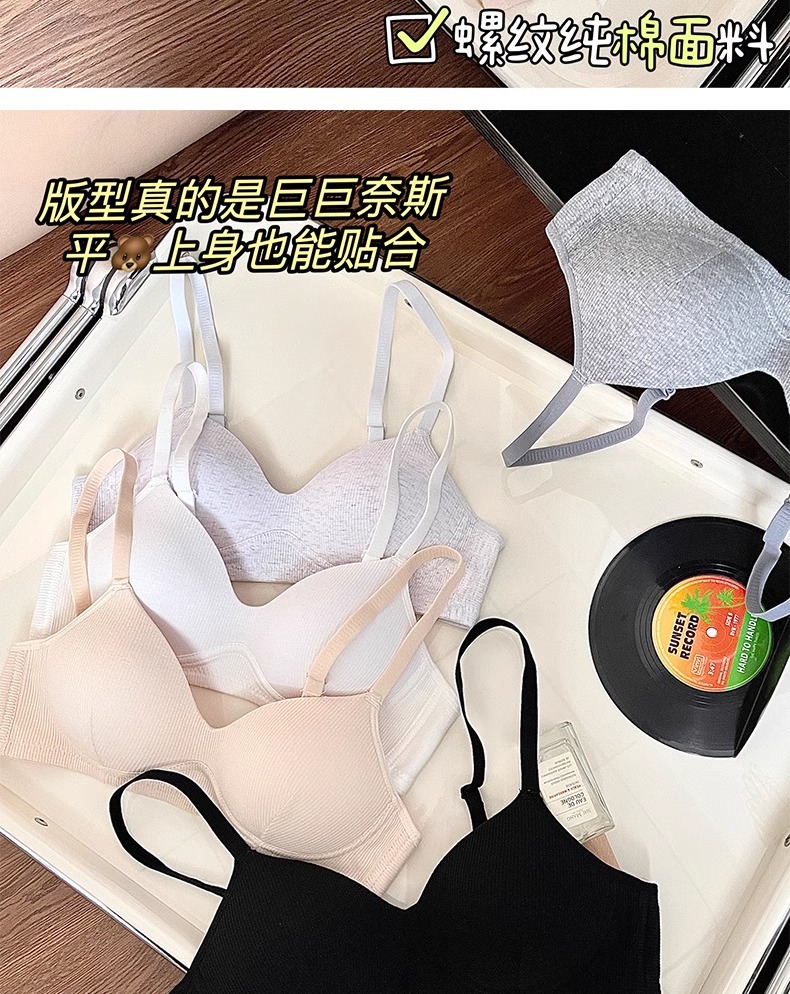 국경 간 퓨어 코튼 대학생 고등학교 소녀 브라 속옷 여성의 작은 가슴, 강철 고리없이 얇은 대외 무역 브래지어 수집스토어 가기