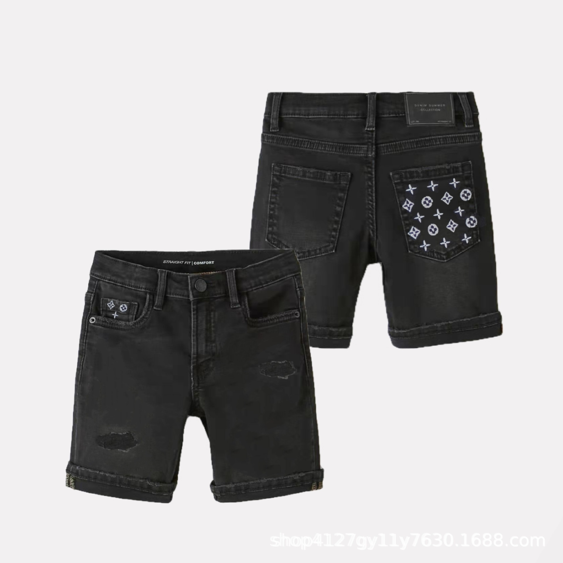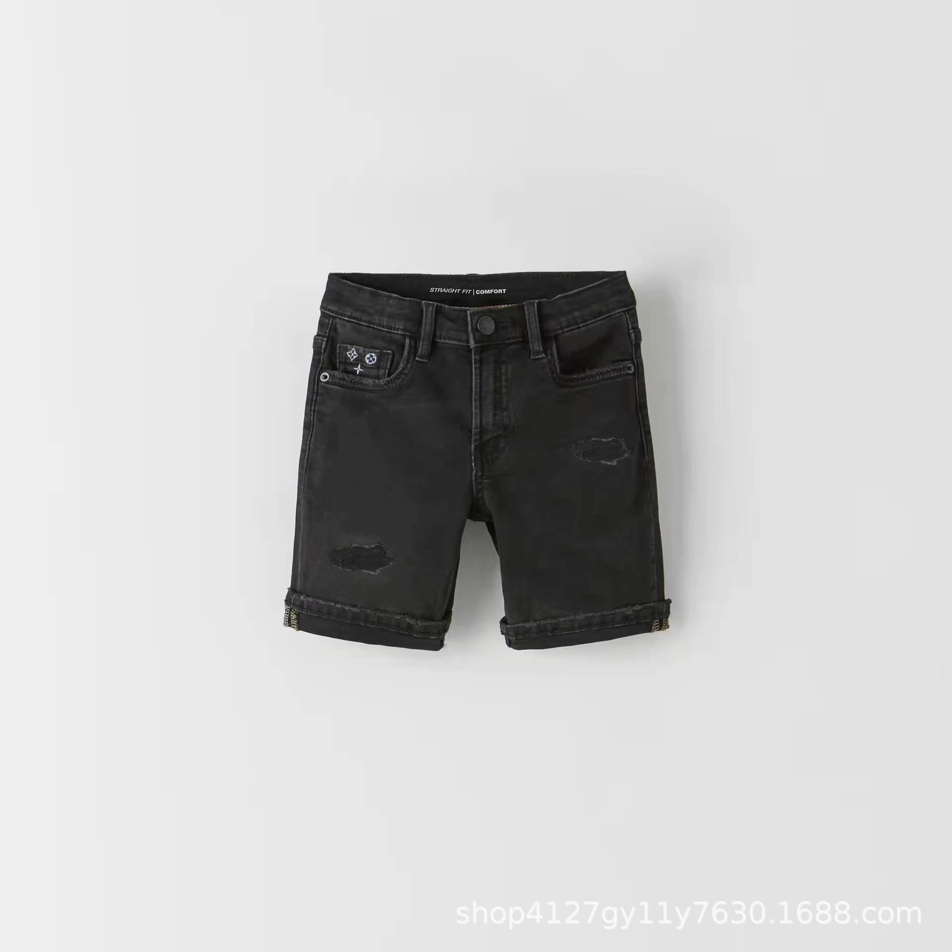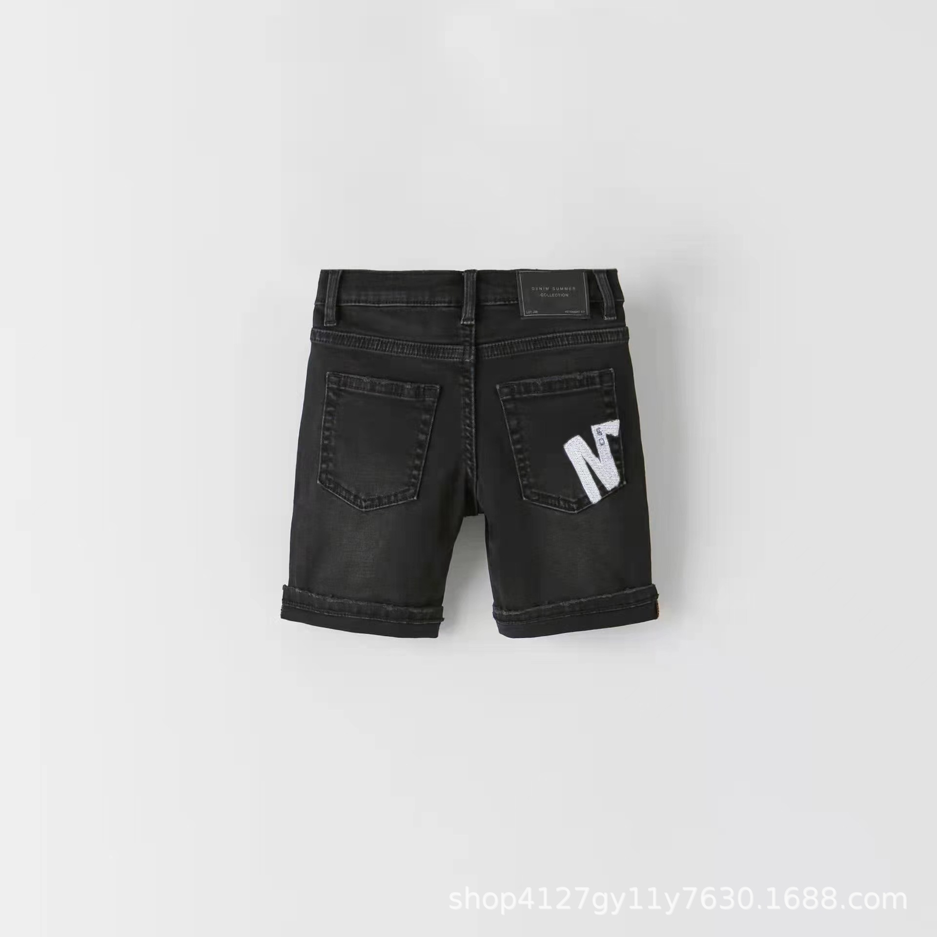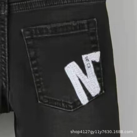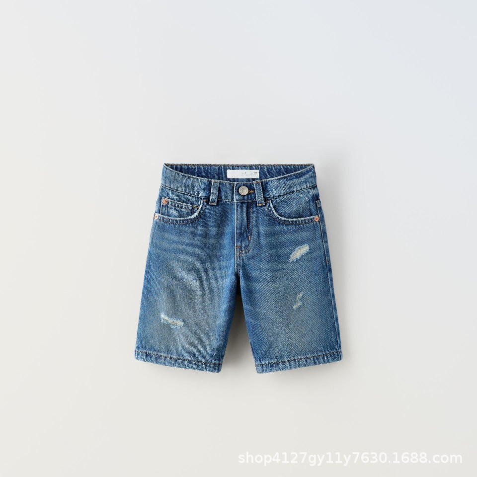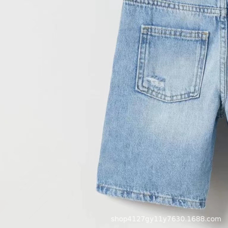 봄과 여름 2024 새로운 블루 블랙 데님 소년과 소녀 어린이 착용 높은 허리 반바지 캐주얼 통기성 착용 방지 및 편안한스토어 가기