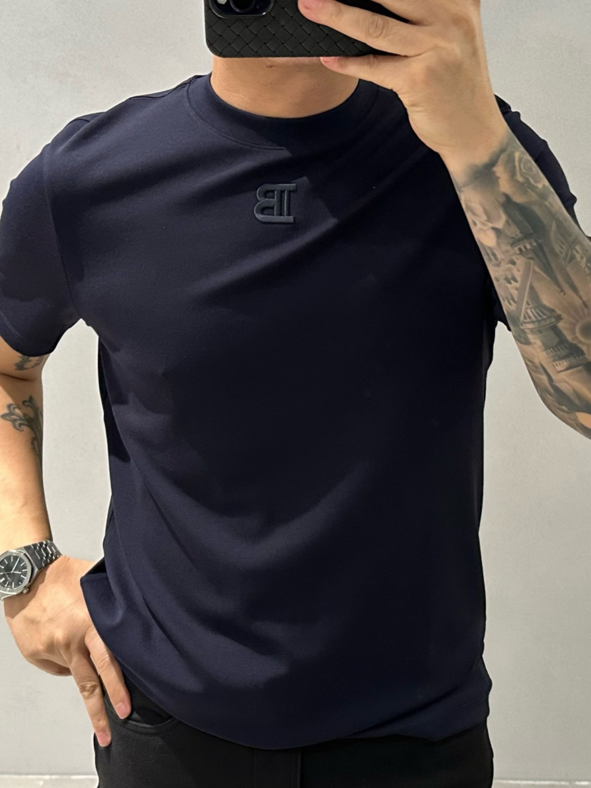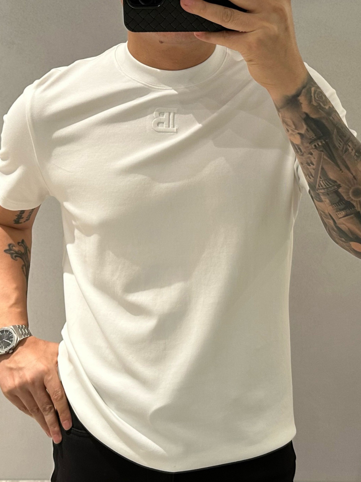 2025 여름 고품질 편지 자수 주름 방지 솔리드 컬러 반팔 티셔츠 남성 슬림 유럽 티셔츠 바닥 셔츠 유행스토어 가기