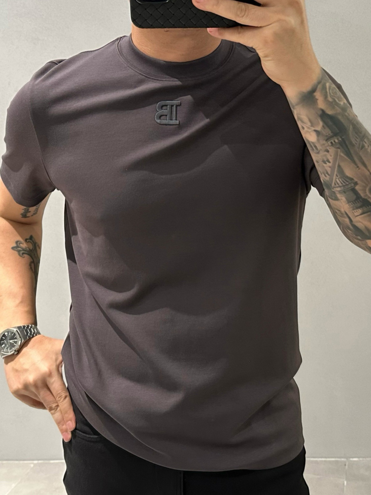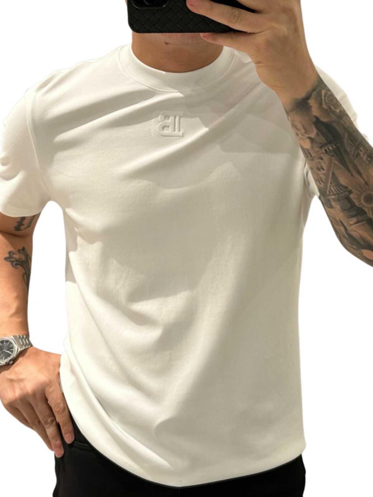 2025 여름 고품질 편지 자수 주름 방지 솔리드 컬러 반팔 티셔츠 남성 슬림 유럽 티셔츠 바닥 셔츠 유행