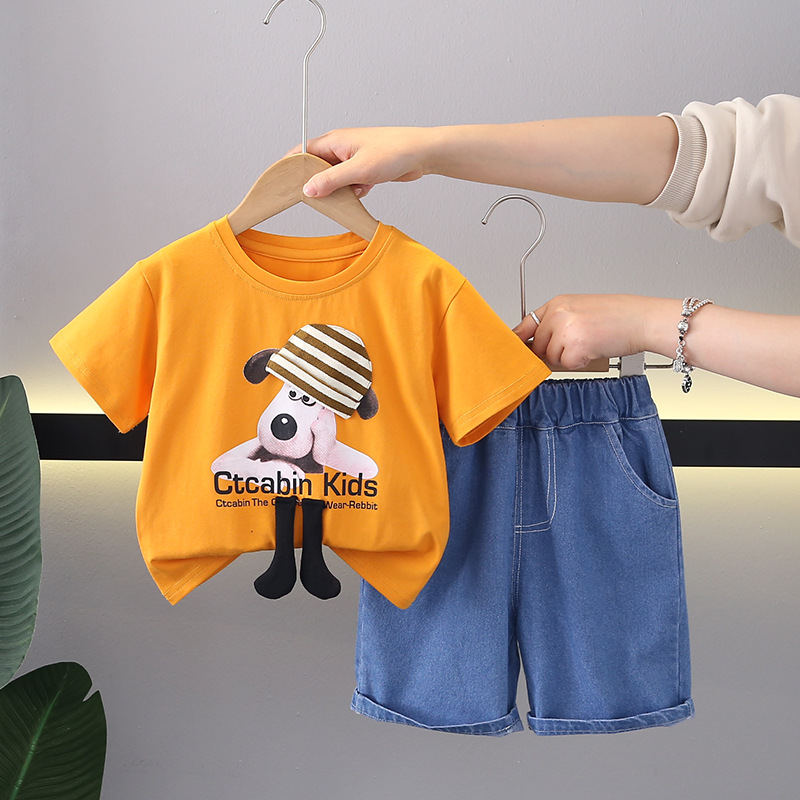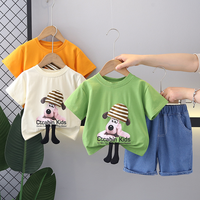대외 무역 어린이 여름 원피스 소년 세트 2024 새 1234 세 아기 반팔 투피스 한국 중소 아동복스토어 가기