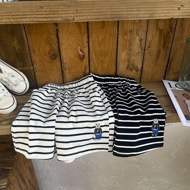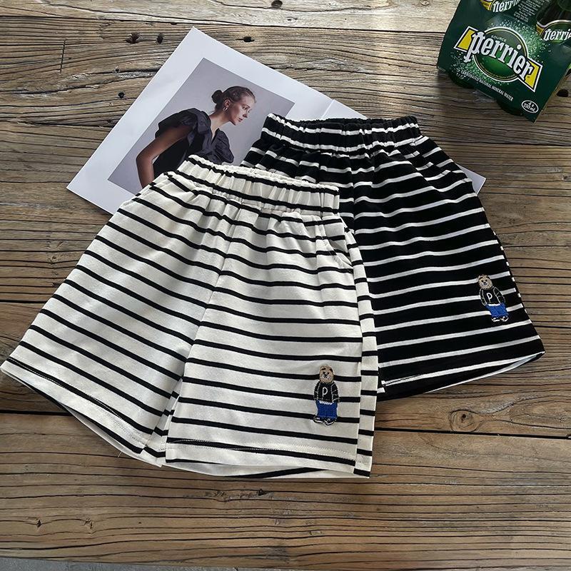 소년 줄무늬 티셔츠 반팔 세트 새로운 어린이 반바지 최고 옷 곰 자수 아기 T 여름 투피스 세트