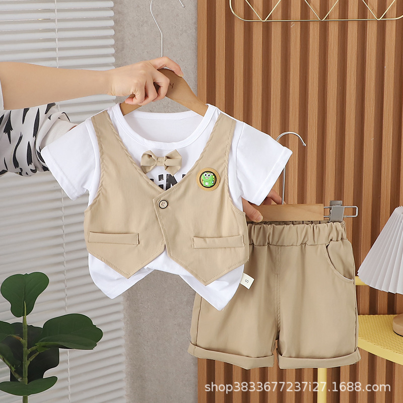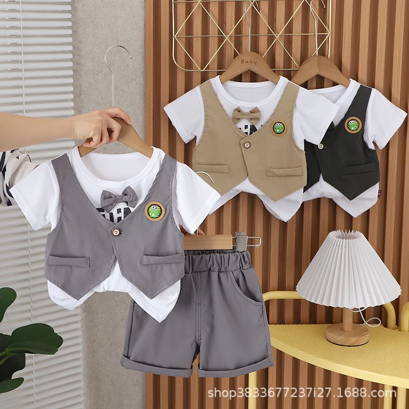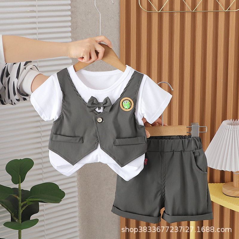 남자 아기 여름 세트 새 소년 여름 공룡 조끼 반팔 반바지 투피스 어린이 여름 머리스토어 가기