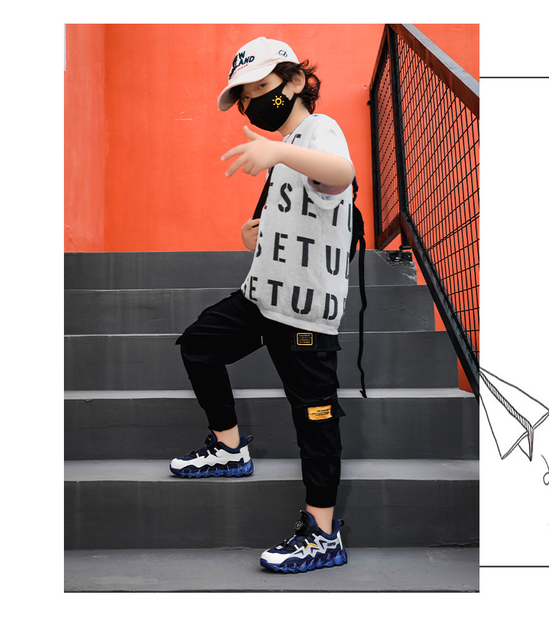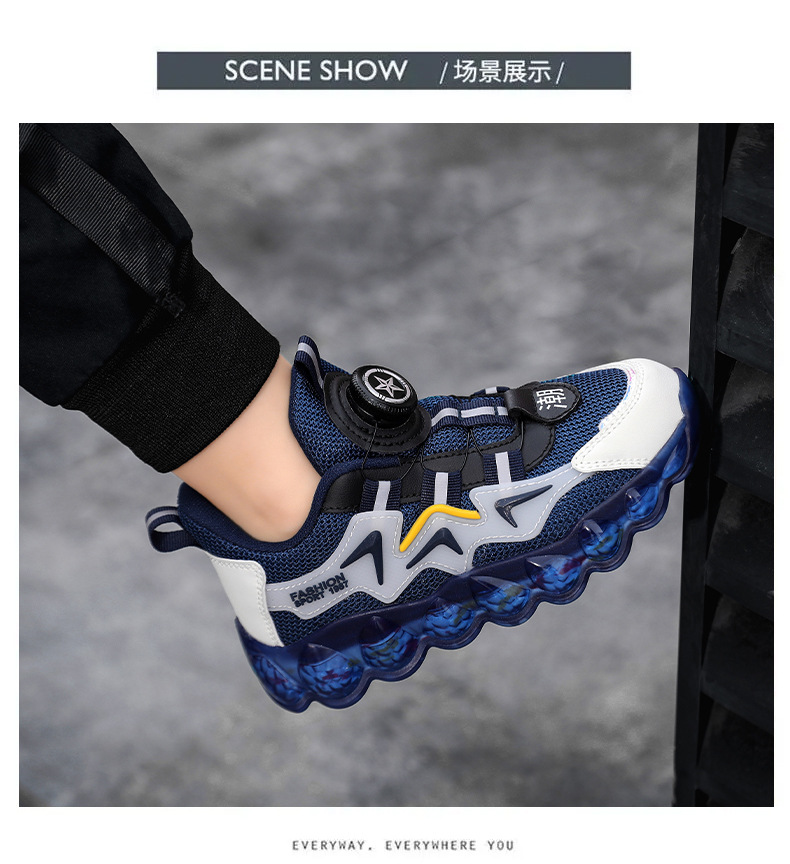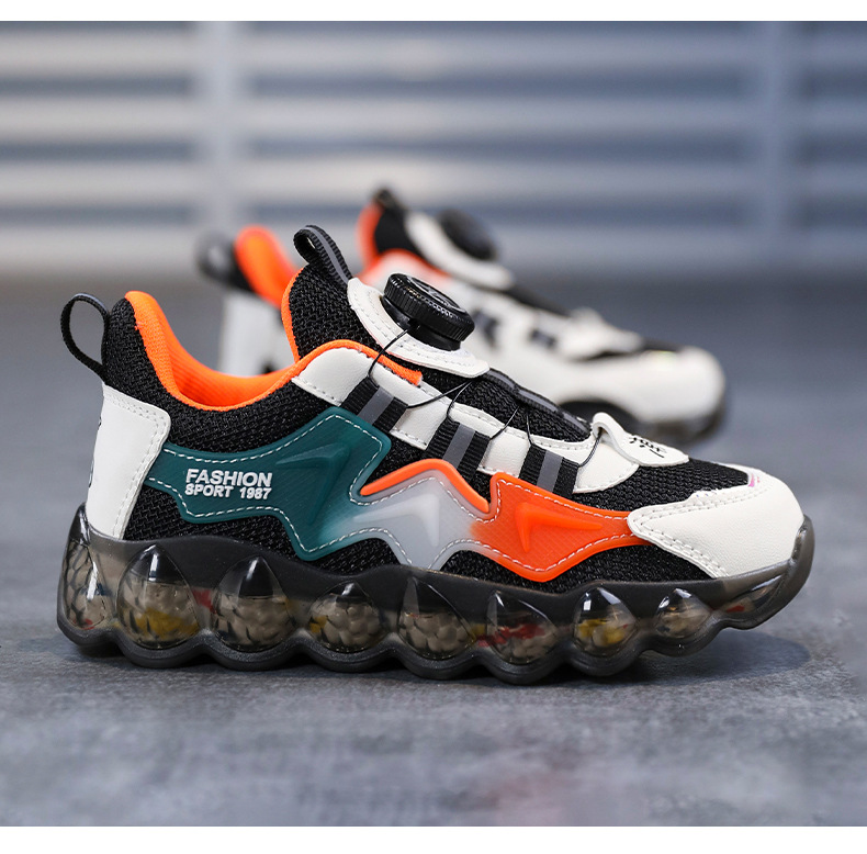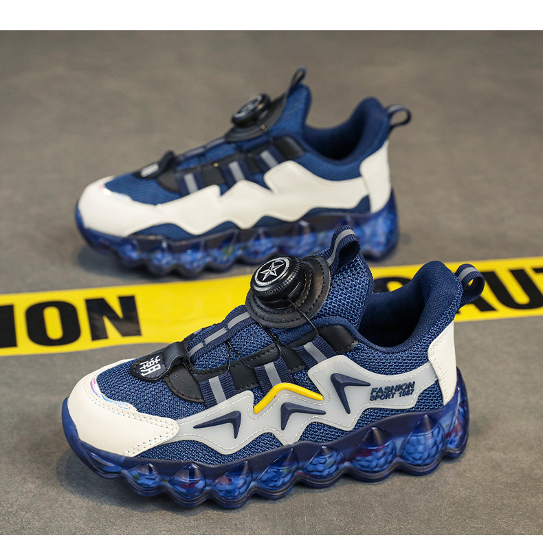 버튼 신발 어린이 스포츠 신발 대형 어린이 소년 소녀 소프트 단독 두꺼운 단독 미끄럼 통기성 자동 레이스 업 러닝 슈즈
