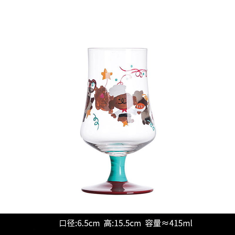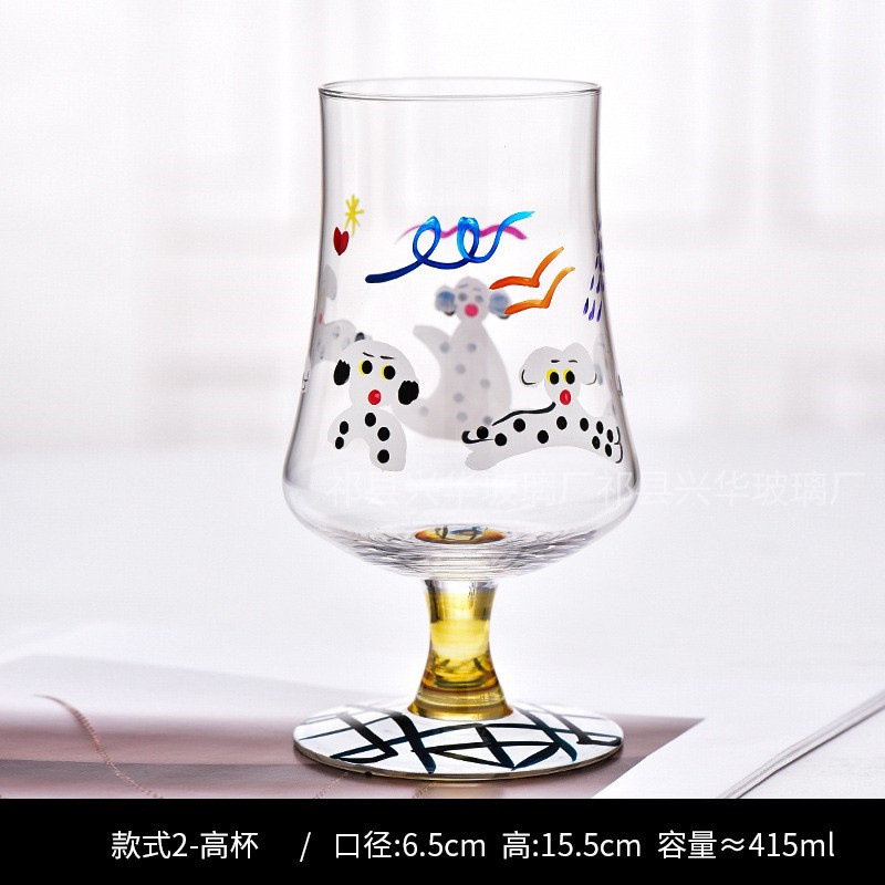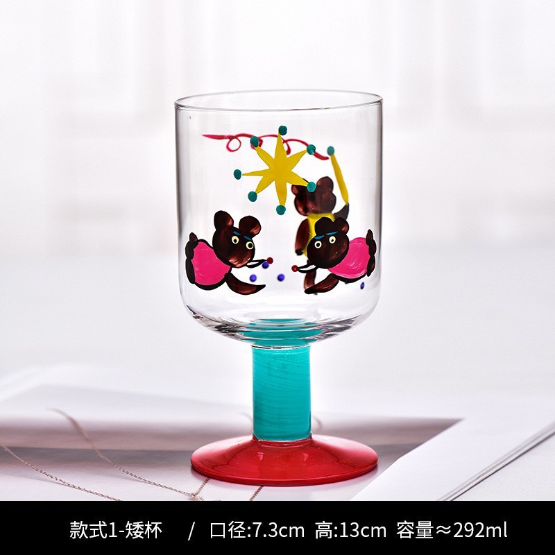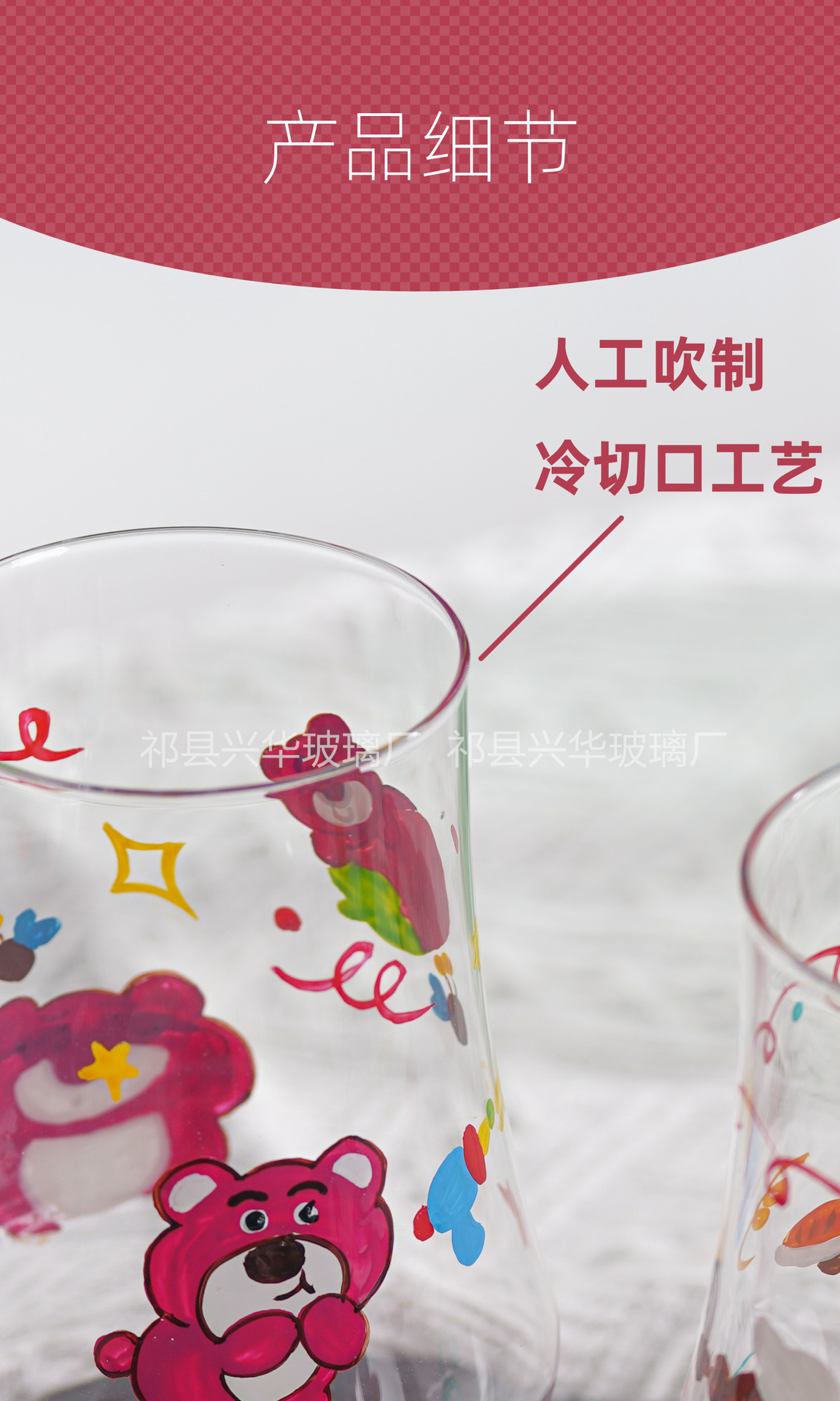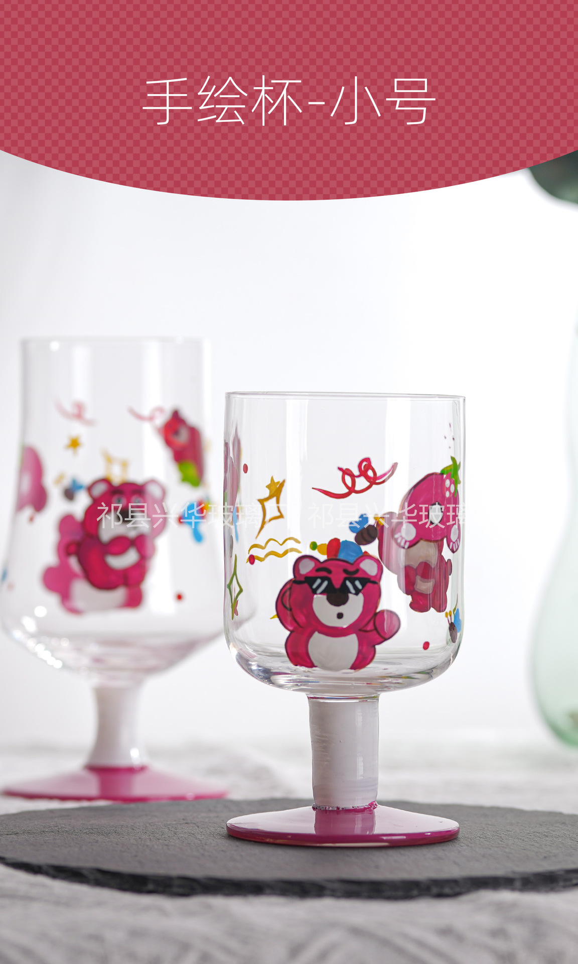 한국 스타일의 귀여운 손으로 그린 곰 강아지 고블 가정용 컬러 유리 복고풍 주스 음료 컵스토어 가기