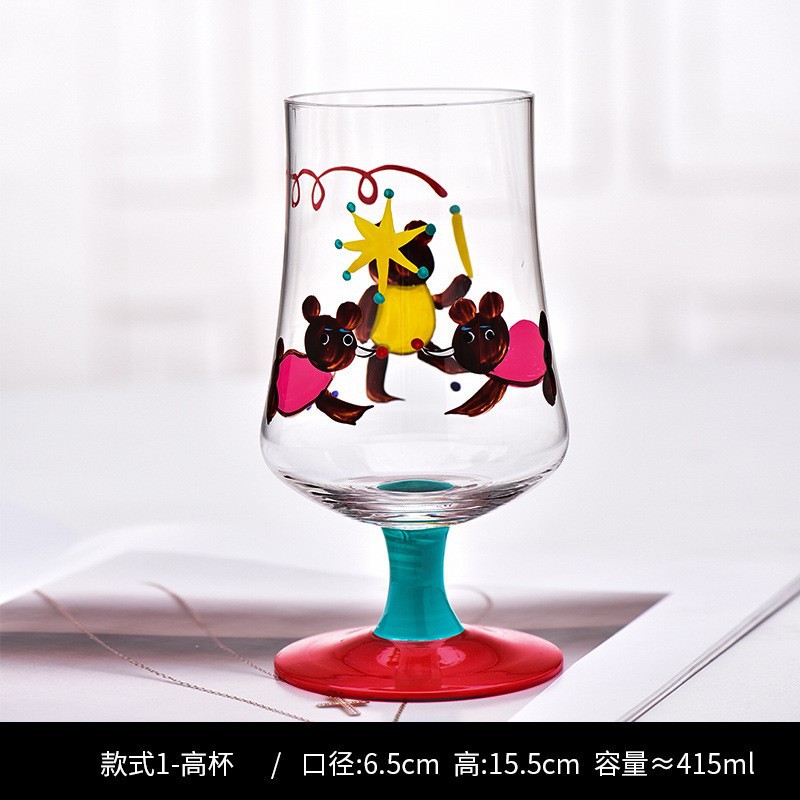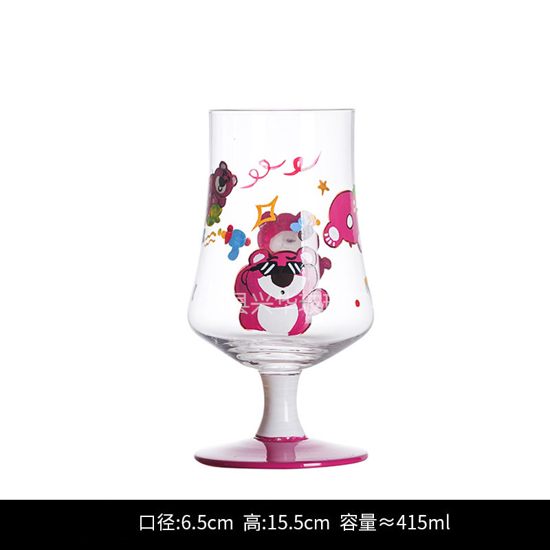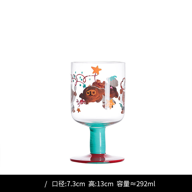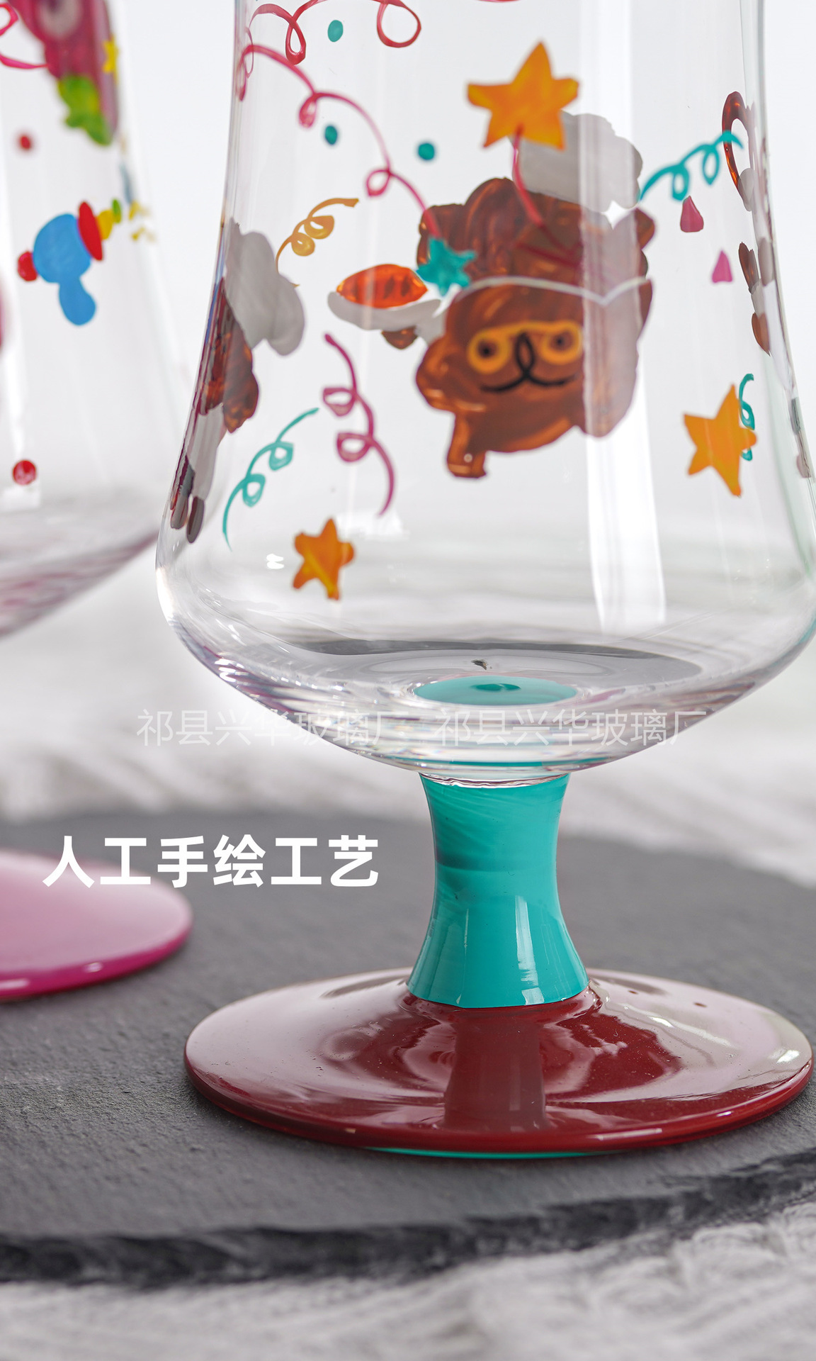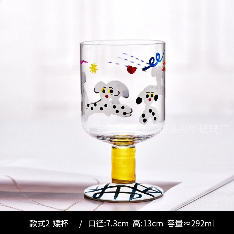 한국 스타일의 귀여운 손으로 그린 곰 강아지 고블 가정용 컬러 유리 복고풍 주스 음료 컵스토어 가기