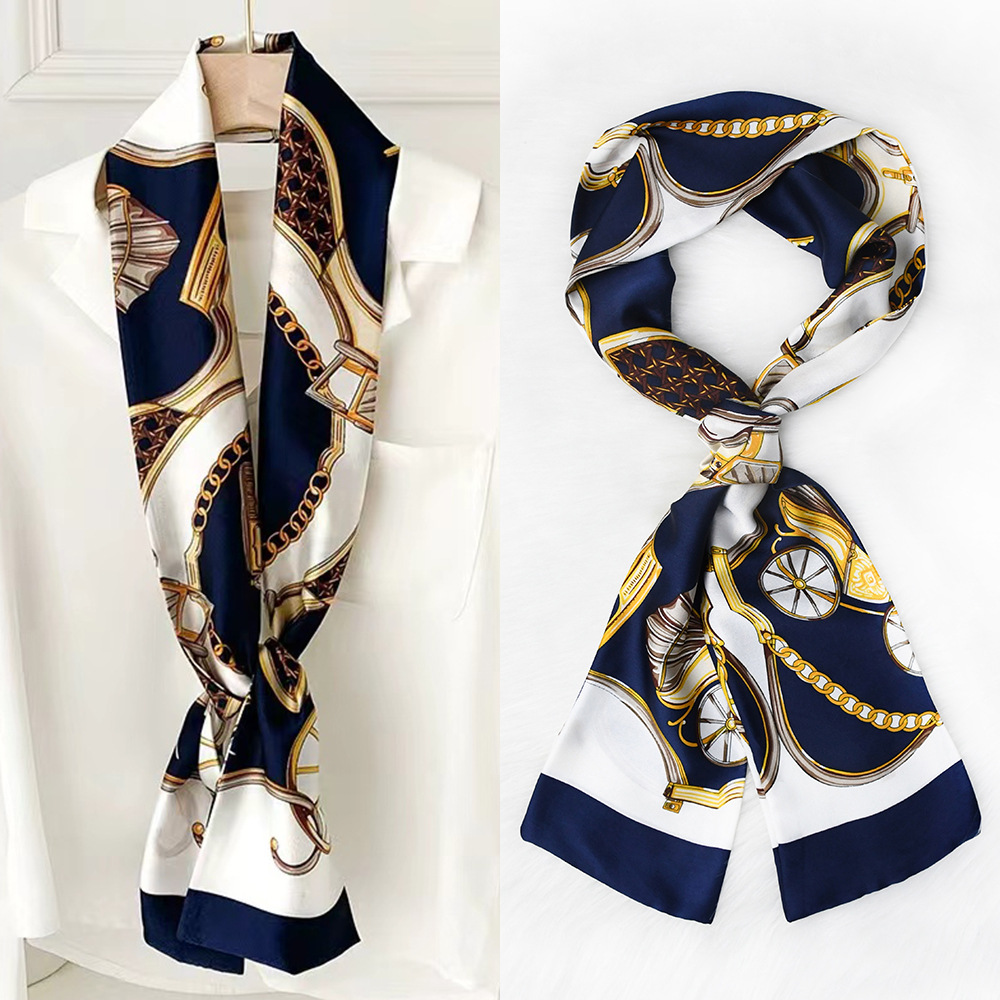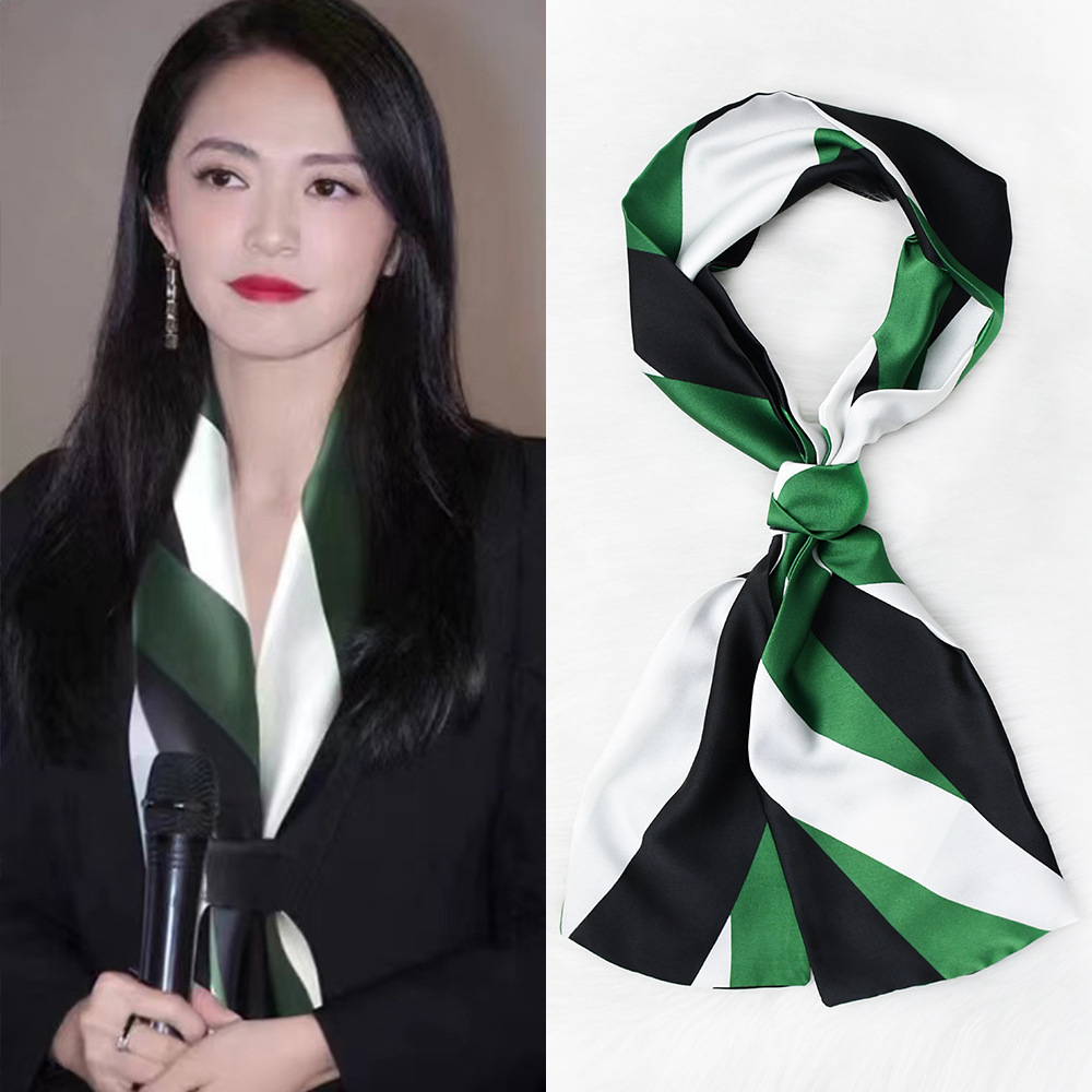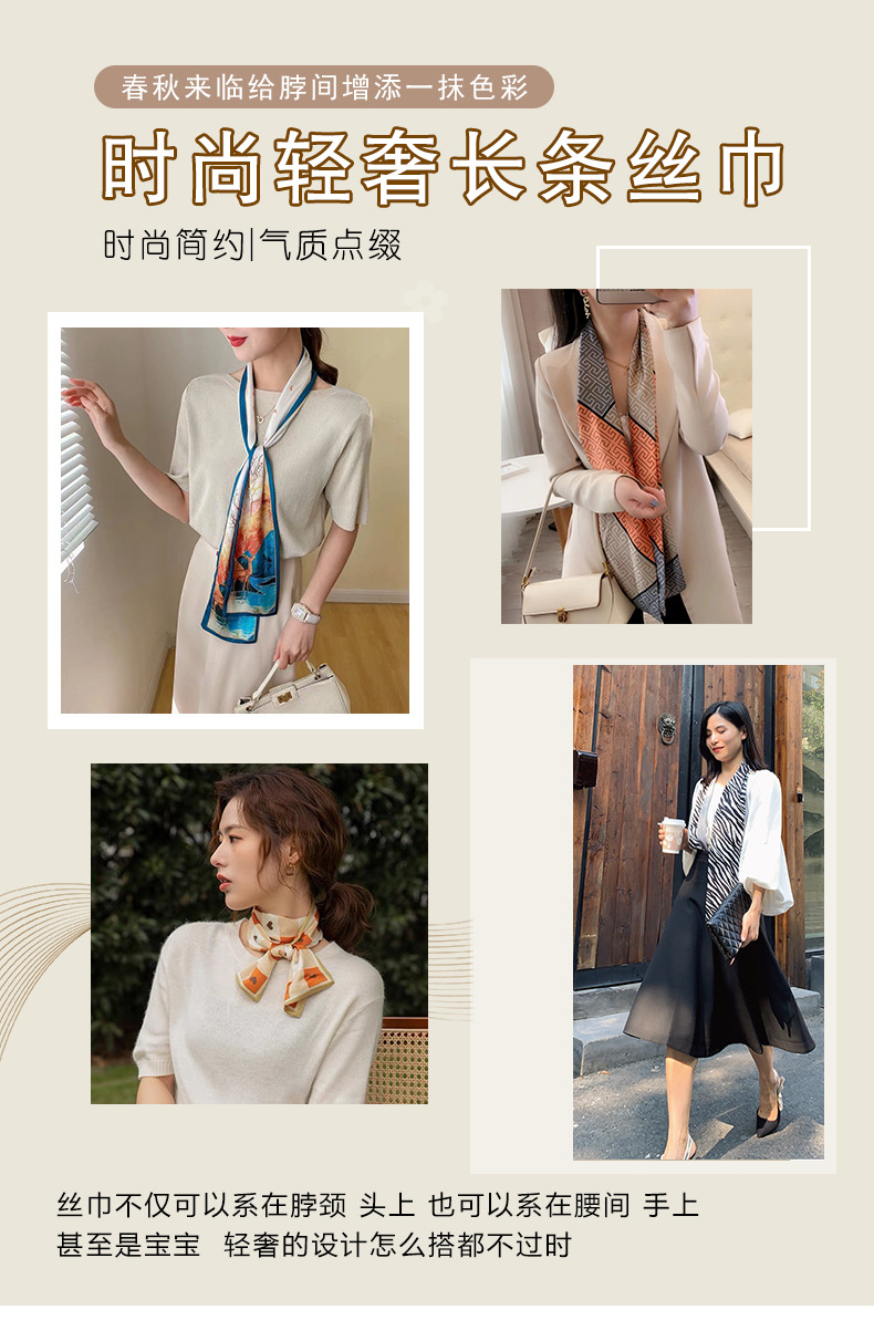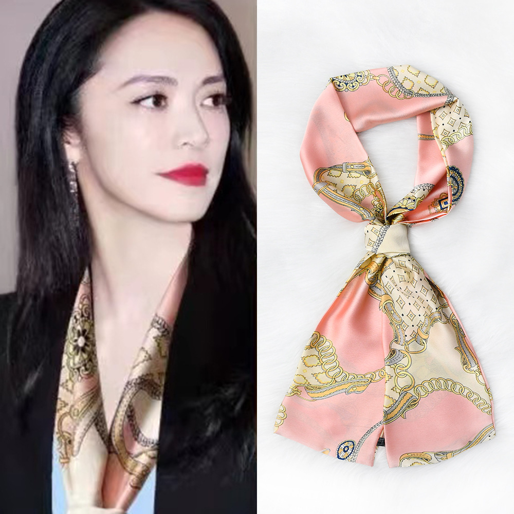 좁은 실크 스카프 긴 실크 스카프 하이 엔드 느낌을 가진 봄과 여름 올 매치 실크 더블 레이어 양면 전문 스카프 스타스토어 가기