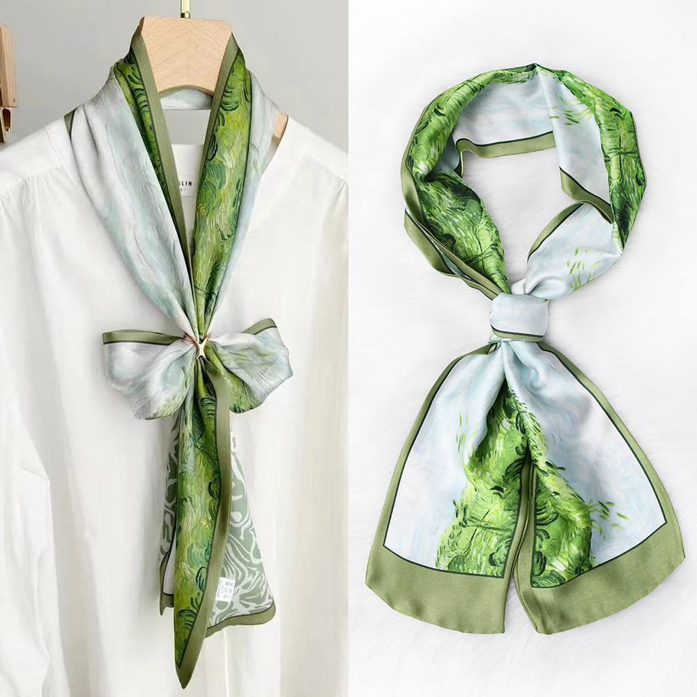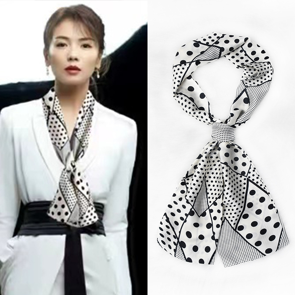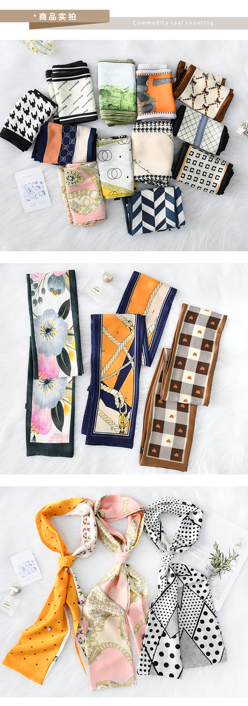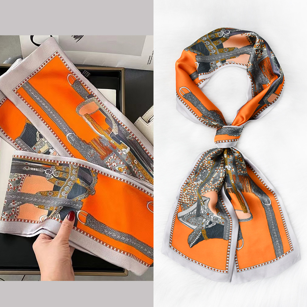 좁은 실크 스카프 긴 실크 스카프 하이 엔드 느낌을 가진 봄과 여름 올 매치 실크 더블 레이어 양면 전문 스카프 스타